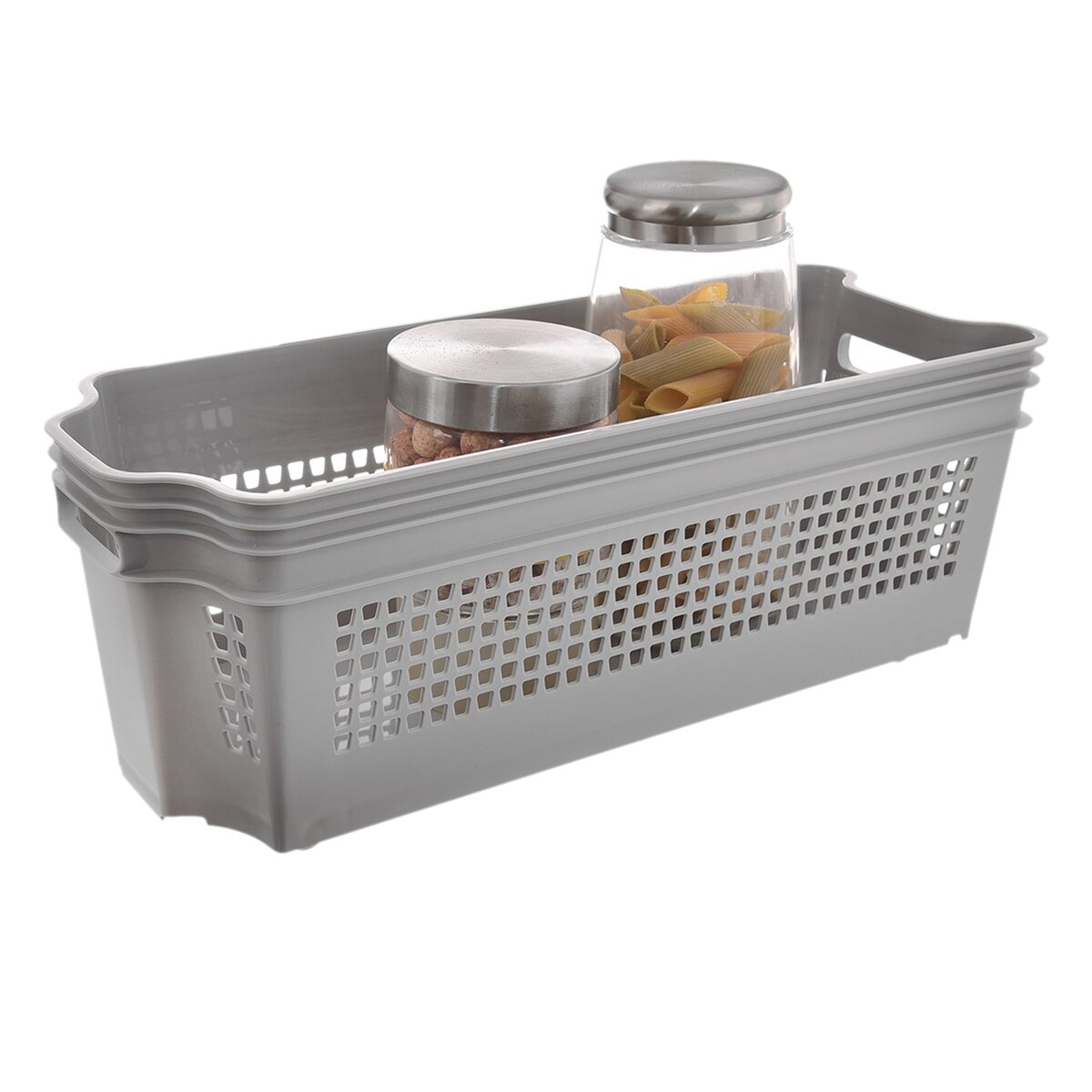 Manipulaci s košíkem a jeho obsahem usnadňují 4 kolečka umístěna zespodu nádoby. Výhodou jsou i dva úchopy usnadňující jeho přenášení. Košíky jsou stohovatelné, díky čemuž ušetříte místo v poličkách nebo ve skříních. Vyrábí se v bílém nebo šedém provedení.