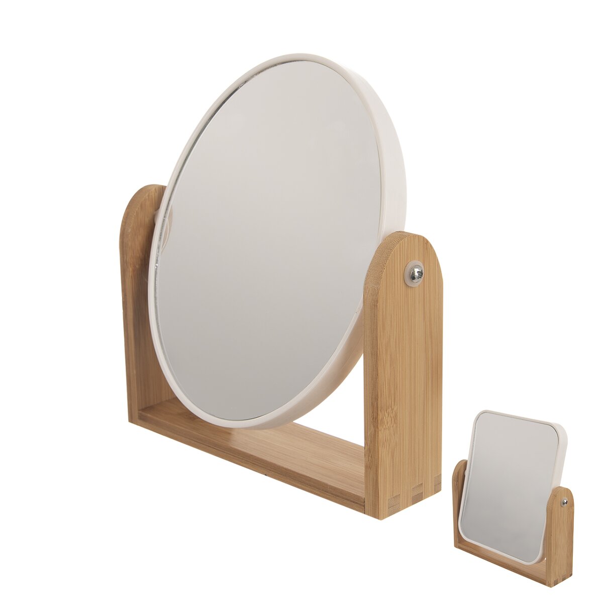 Kód produktu 510150Oboustranné zrcadlo WHITNEY v oválném nebo hranatém provedení, uložené v bambusovém stojanu. Druhá strana zvětšuje obraz, takže umožní dokonalé líčení či odličování.