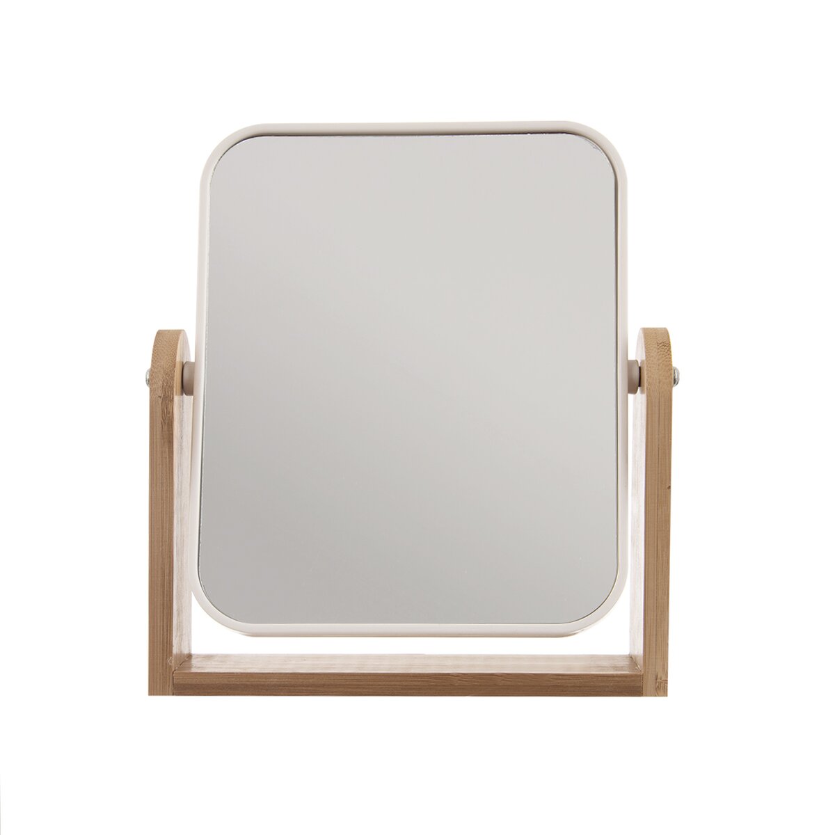 Upravený obličej a přiměřený make-up je vizitkou každé ženy. Aby bylo líčení očí, úprava obočí stejnoměrné, přesně podle vašich představ, umožní šikovné stolní zrcadlo z plastu PS a skla, uložené na kovových šroubech v elegantním bambusovém stojanu.