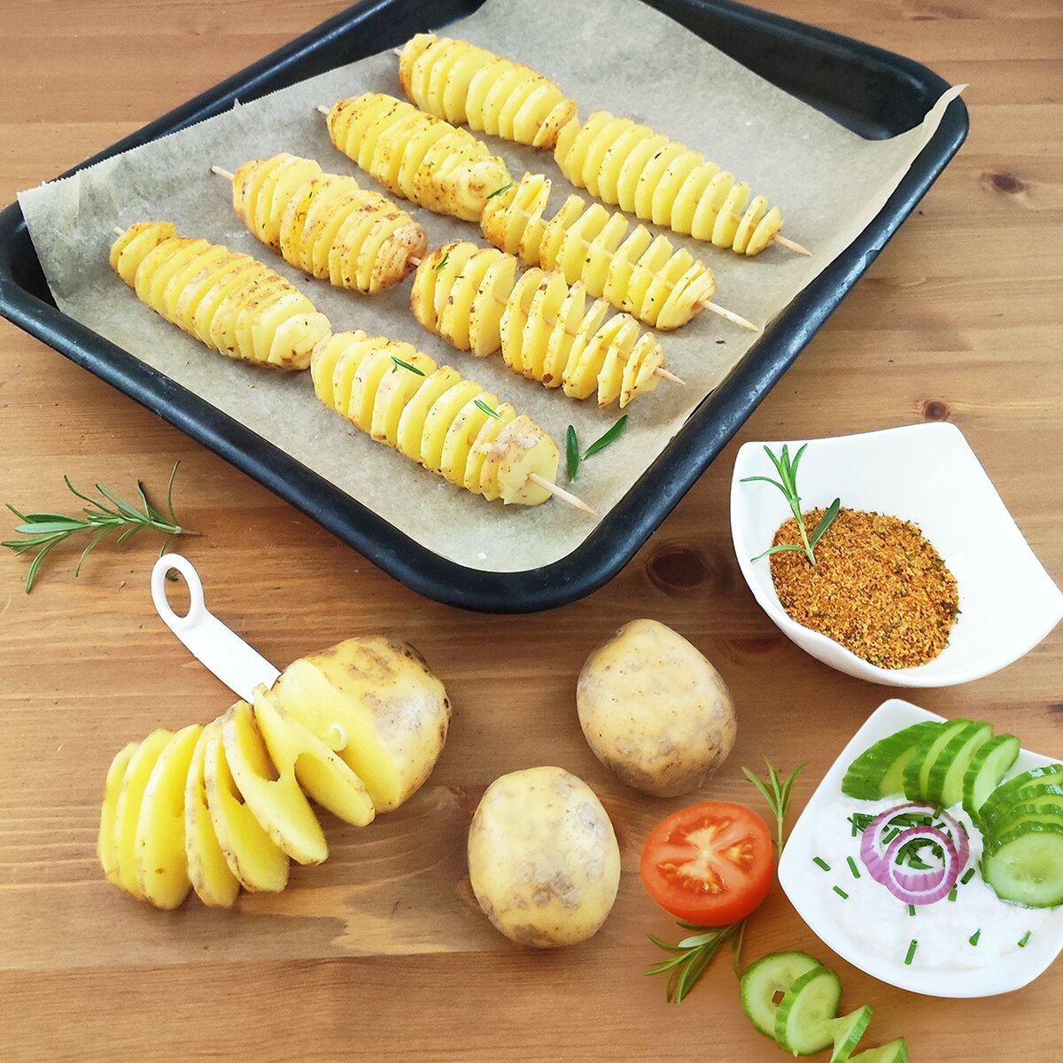 Více informacíDoma vyrobené spirálové smažené chipsy z brambor budou hračka. Navíc vyjdou mnohem levněji, než kupované na trhu či jarmarku. Malý kráječ z PP plastu vytvoří během chvíle dlouhou spirálu z čerstvých brambor, okurky, cukety či mrkve. Brambory lze napíchnout na špejli nebo grilovací jehlu a dát smažit nebo péct na pečicím papíře do trouby. Čerstvá zelenina zase ozdobí saláty nebo chlebíčky.