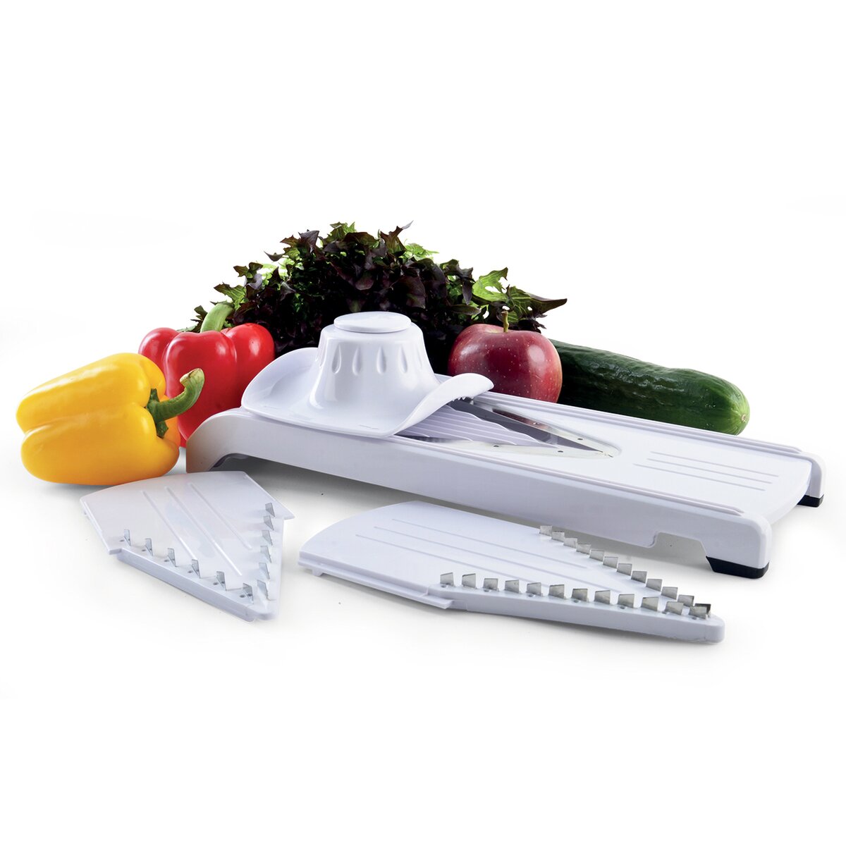 Je opatřeno výměnnými struhadly, které umožňují plátkování, strouhání úzkých i širších kusů zeleniny - např. oblíbených hranolků. Výměnné části jsou opatřené ostrými nerezovými břity. Součástí je vodící rukojeť pro ochranu prstů, pomocí které potravinu, např. cibuli, krájíte, aniž byste se zranili.