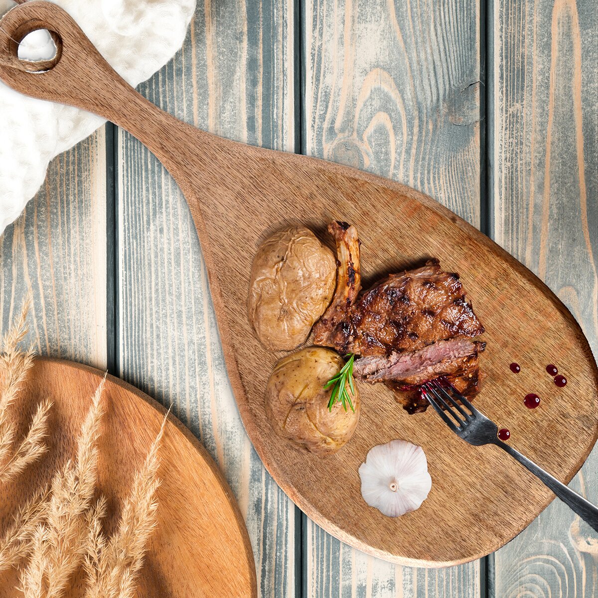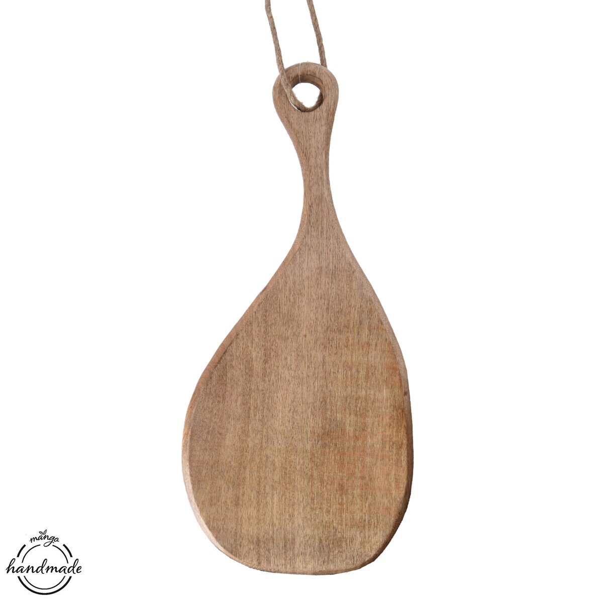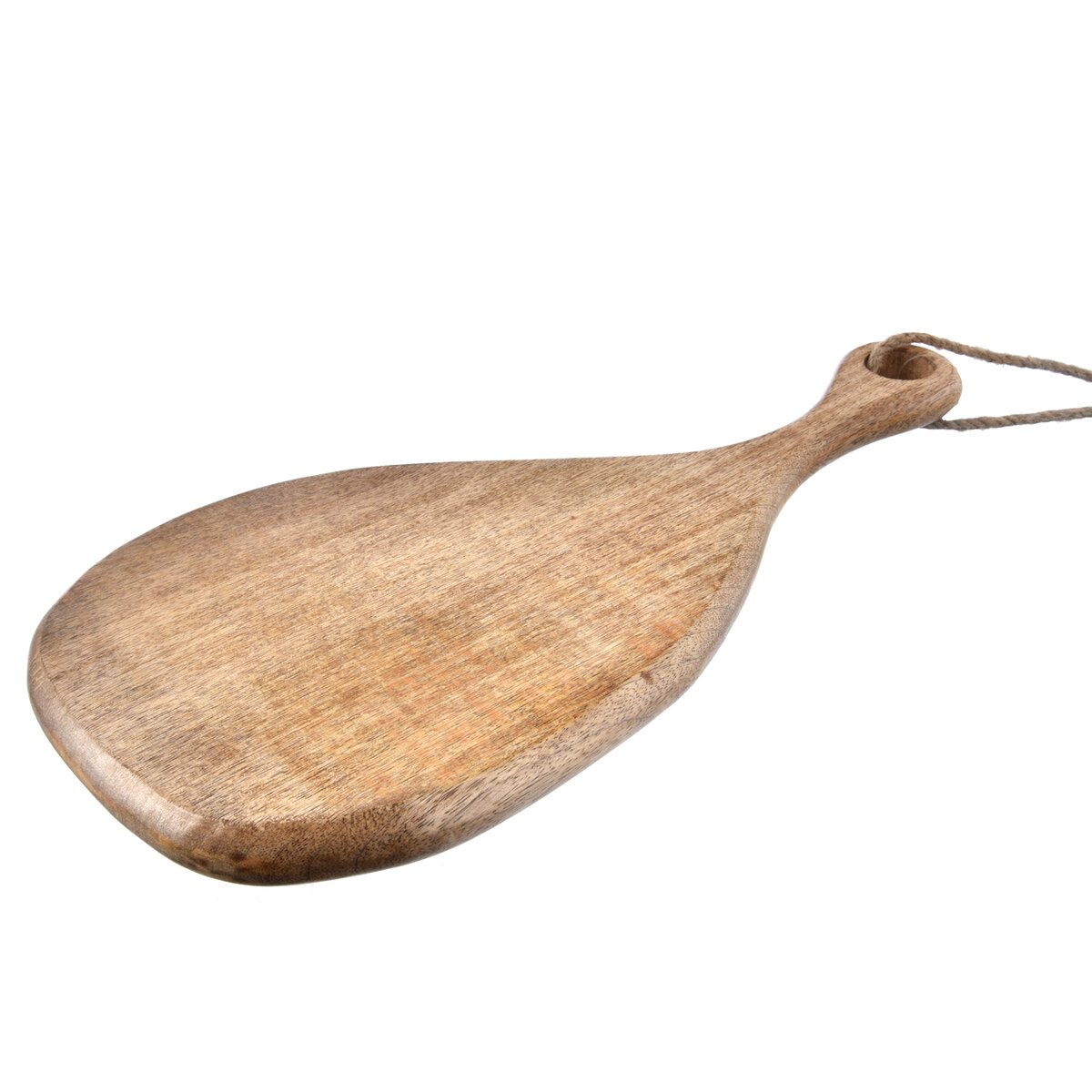 Kód produktu 126847Kuchyňské zaoblené prkénko z mangového dřeva s rukojetí, o velikosti 51x23 cm, vhodné ke stylovému servírování snídaně, večeře nebo jako zajímavá dekorace na zahradní oslavě.
