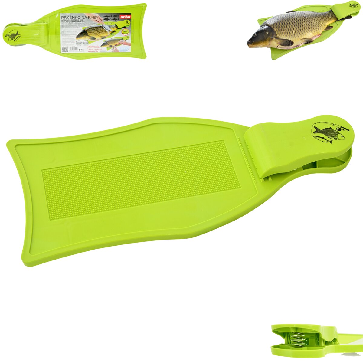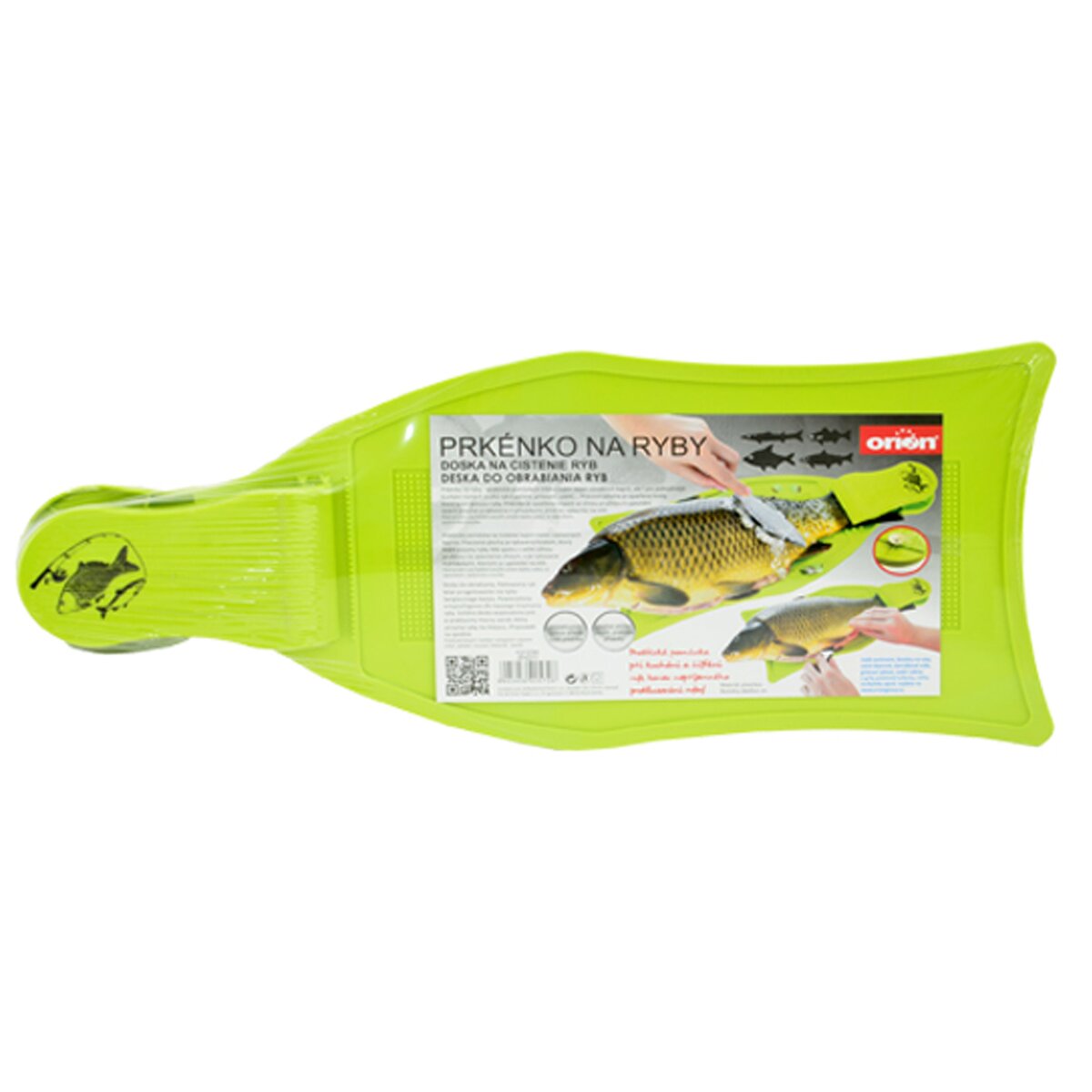 Prkénko na ryby - praktická pomůcka k čištění šupin nejen vánočních kaprů. Pracovní plocha je opatřena hroty, které brání posuvu ryby. Prkénko je opatřeno klipem s velmi silnou pružinou k upevnění ocasní ploutve a vybaveno 4 přísavkami, jimiž jej upevníte na stůl. Doporučujeme využít škrabku šupin. Materiál: plast/kov. Rozměry: 45x18x1 cm.