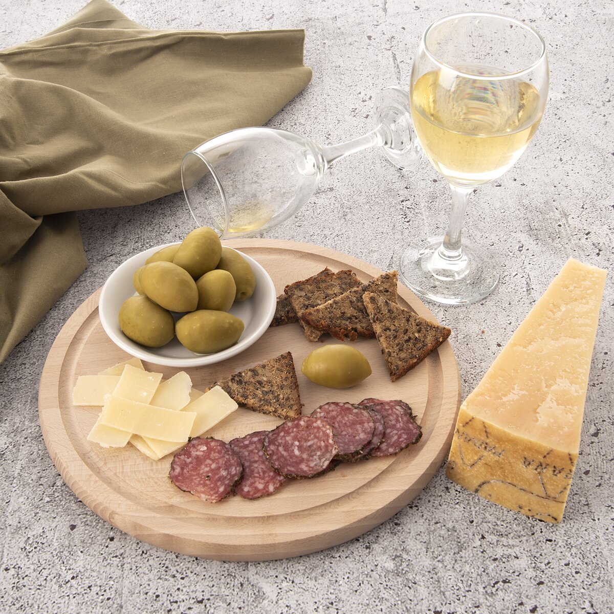 Dřevěné kruhové prkénko se hodí ke krájení masa, vnitřností, ovoce nebo zeleniny. Po obvodu krájecí plochy je opatřené drážkou, která zachytí šťávy z krájených potravin. Díky tomu nedojde zašpinění kuchyňské linky. Prkénko má průměr 25 cm a lze jej použít i k servírování a prezentaci jídel.