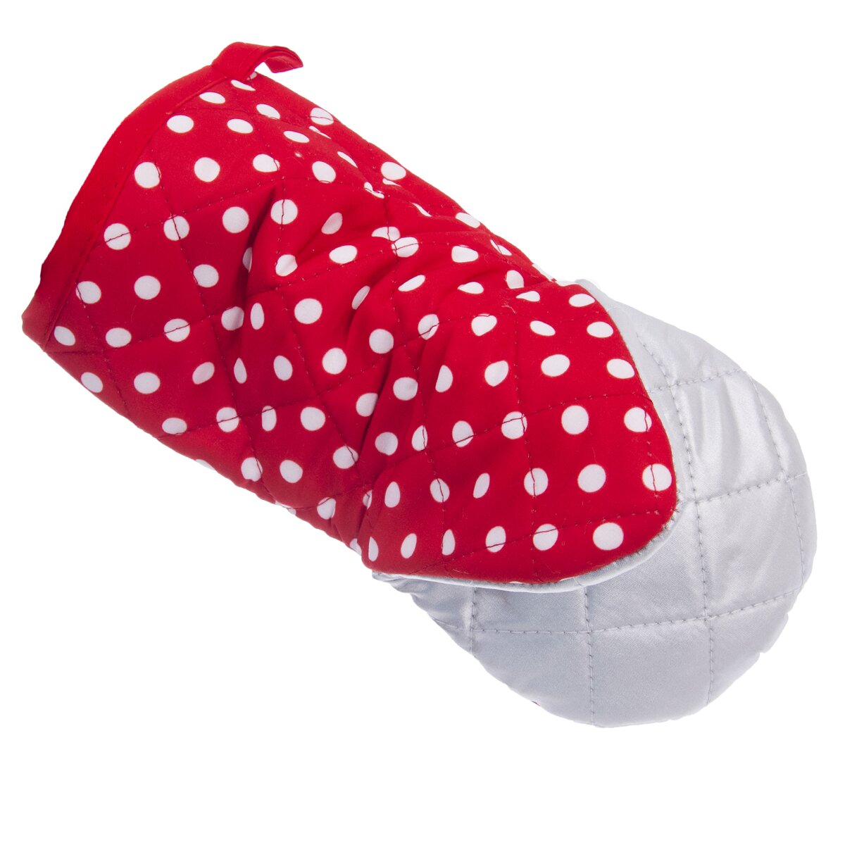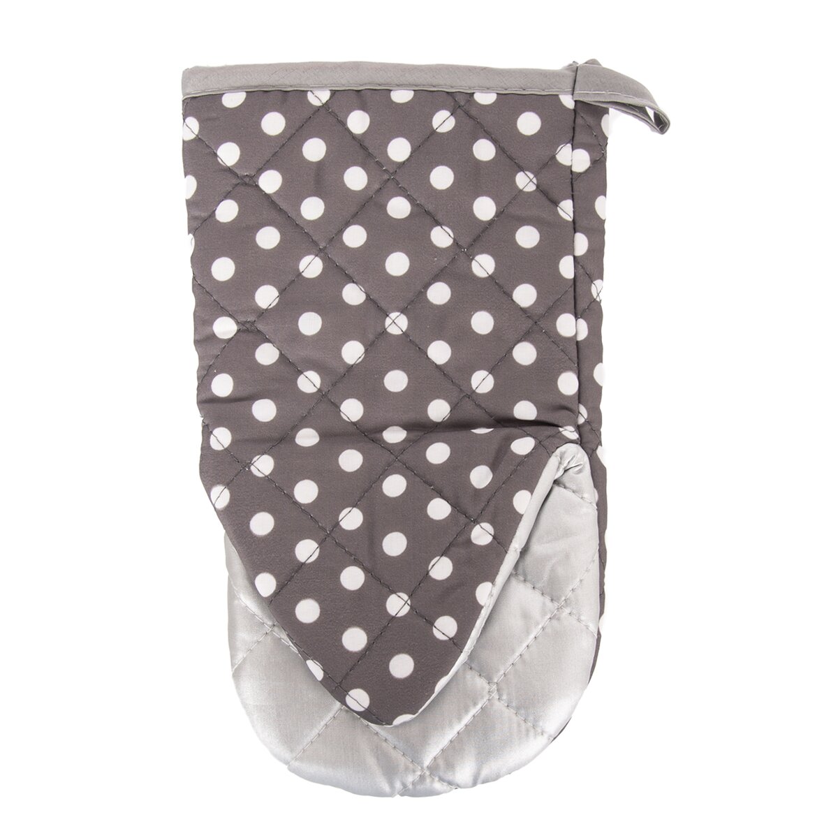 Kód produktu 152150Puntíkovaná kuchyňská chňapka s teflonovou úpravou, magnetem a poutkem pro zavěšení.