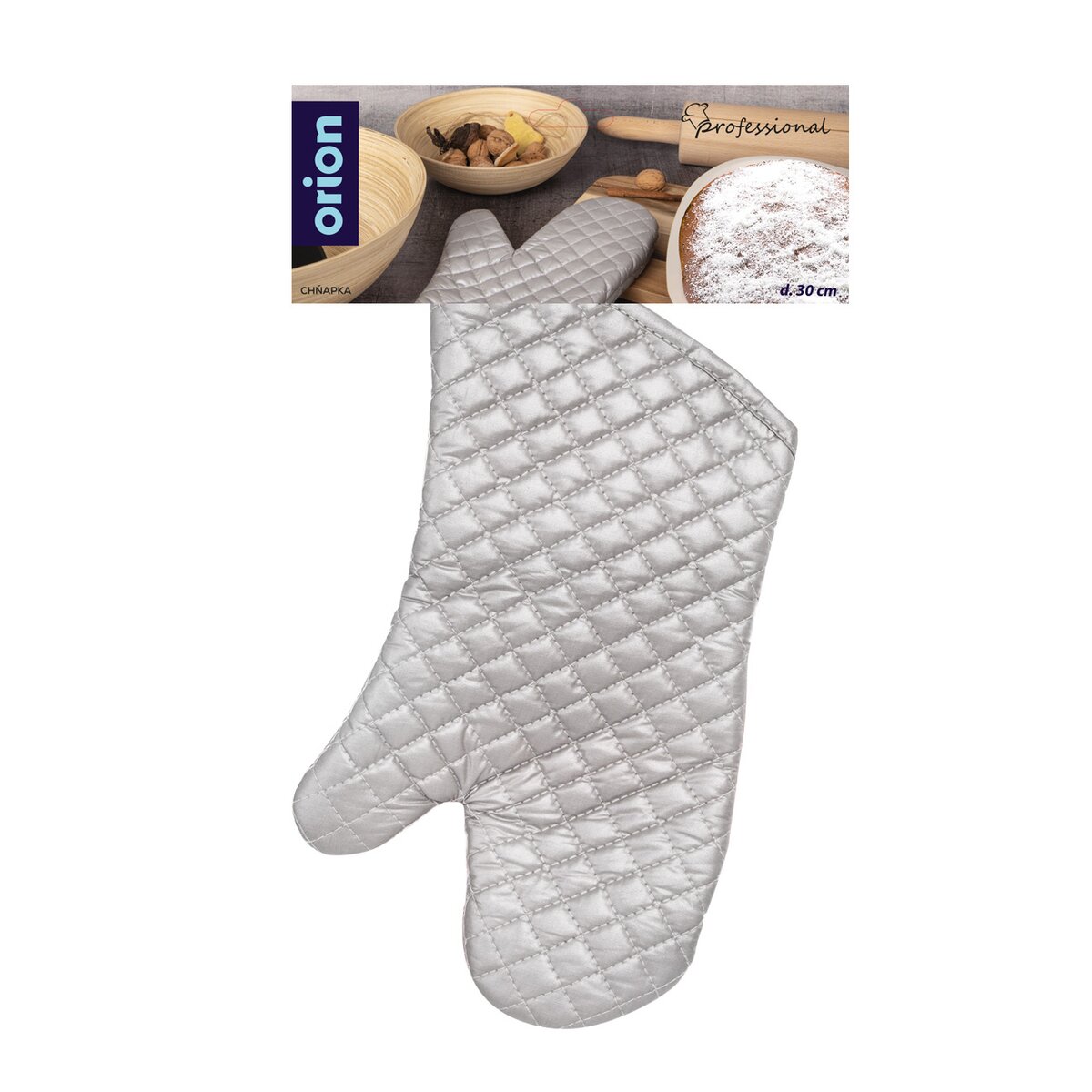 Kód produktu 152171Kuchyňská rukavice QUALITY je dlouhá 30 cm, ochrání tak ruce při vaření a pečení, pomůže vytáhnout z trouby plech, pekáč nebo ze sporáku přesunout nádobí. Opatřena poutkem pro zavěšení.