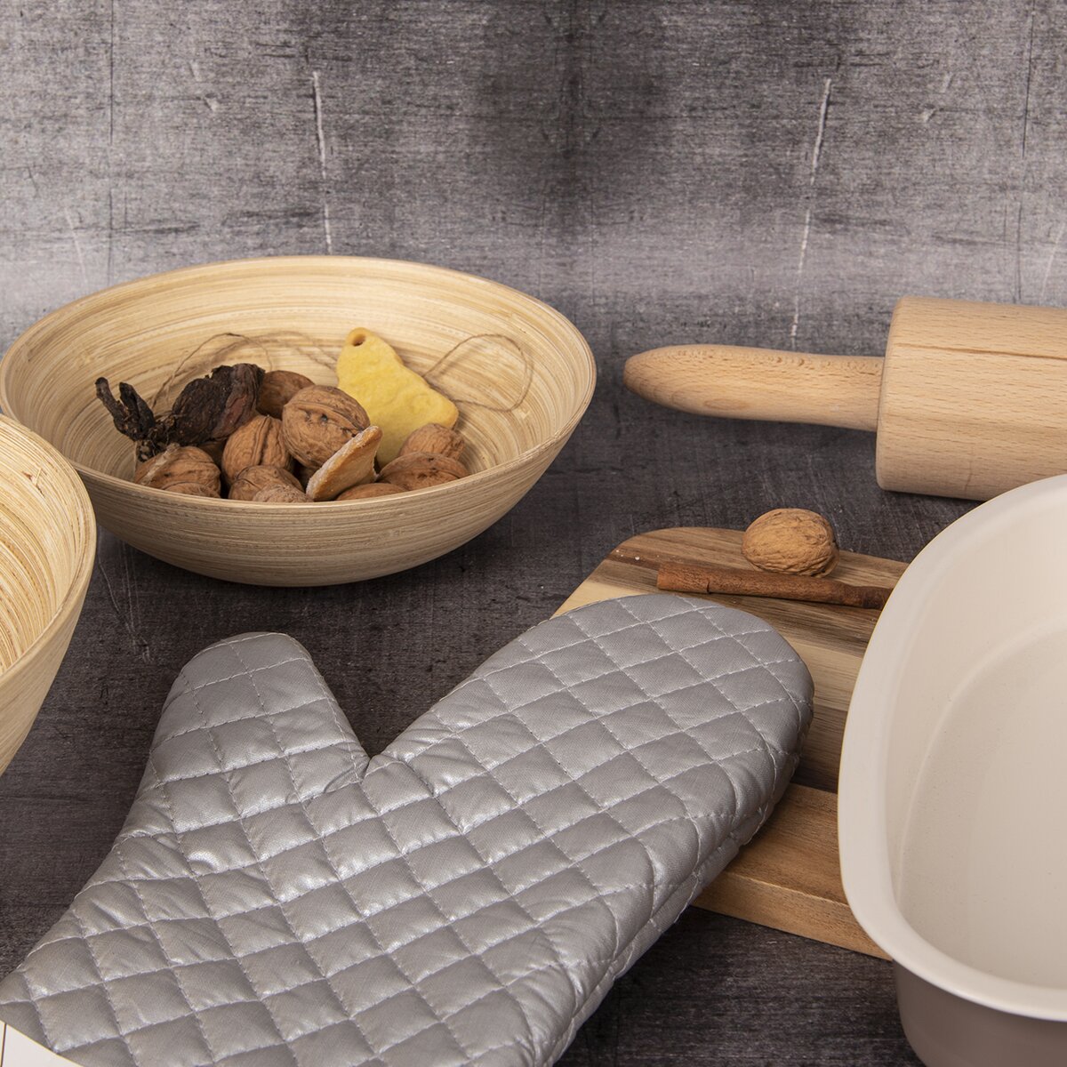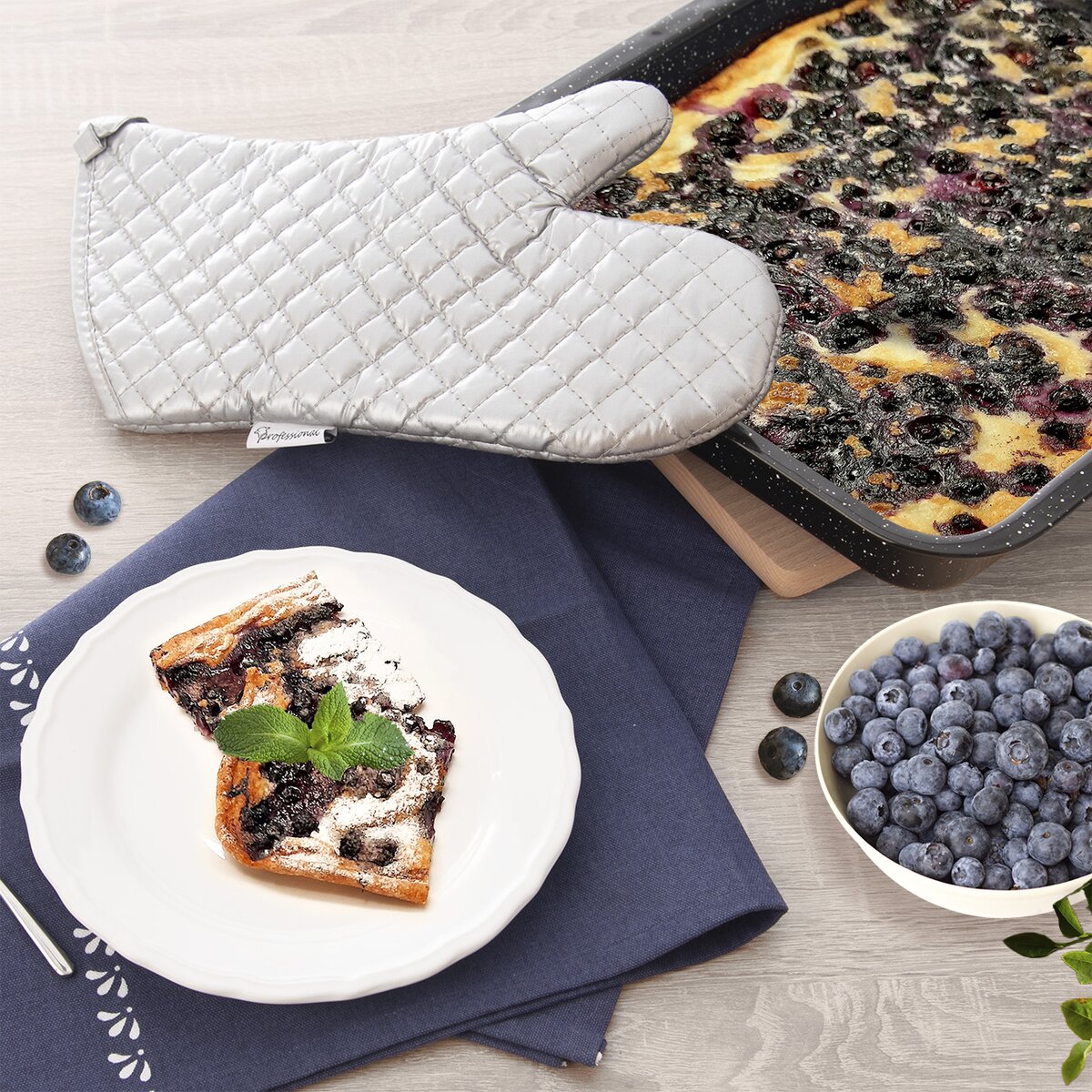 Kód produktu 152172Kuchyňská rukavice QUALITY je dlouhá 36 cm, ochrání tak ruce při vaření a pečení, pomůže vytáhnout z trouby plech, pekáč nebo ze sporáku přesunout nádobí. Opatřena poutkem pro zavěšení.