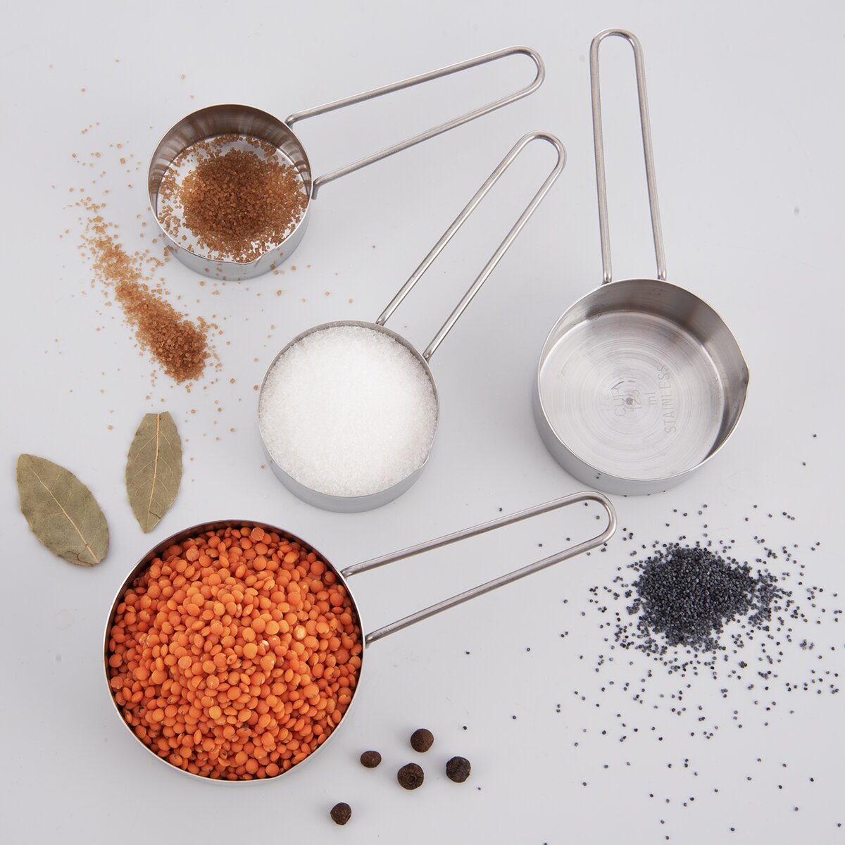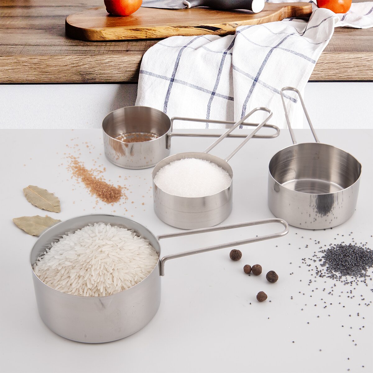 Kód produktu 120561Sada 4 různě velkých nerezových odměrek s dlouhou rukojetí je určena pro přesné dávkování určitého množství surovin pro vaření a pečení - 60 ml, 80 ml, 125 ml a 250 ml.