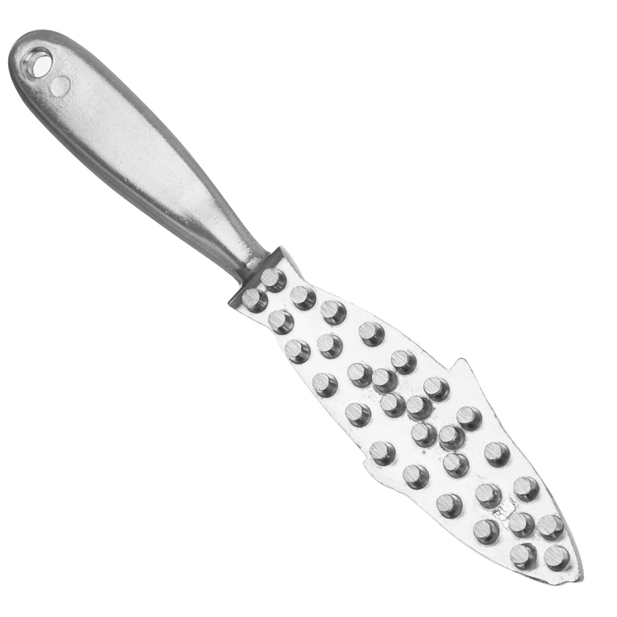 Škrabka na ryby odstraní velmi snadno šupiny a nečistoty. Ulehčí vám nepříjemnou práci při čištění rybích šupin. Materiál: hliník. Ostré hrany hrotů. Rozměry: d. 21,5 cm, š. 3 cm.