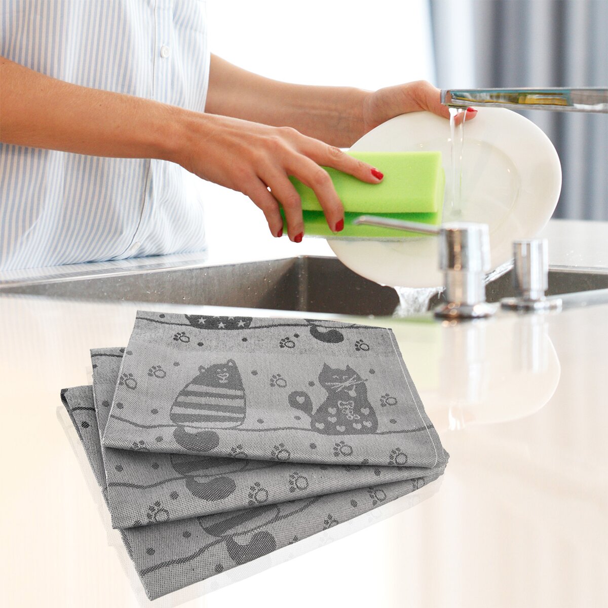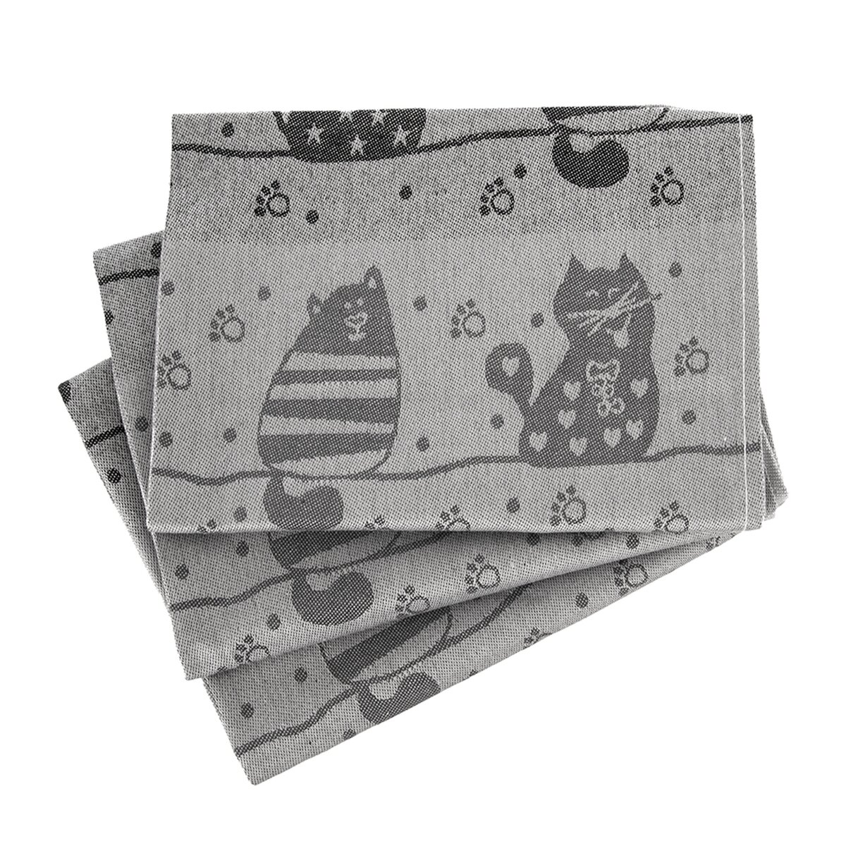 Kód produktu 710979Sada 3 kusů šedých kuchyňských utěrek na nádobí s motivem koček, jsou vyrobené ze 100% bavlny (egyptská) a určené pro efektivní utírání umytého nádobí.