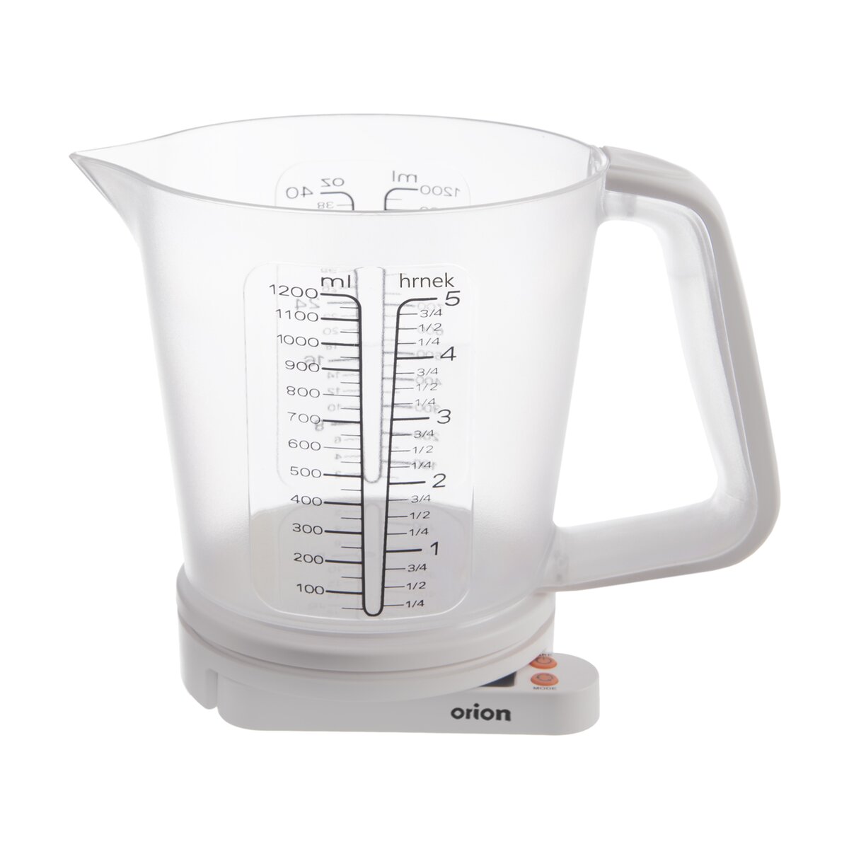 Na odměrce vyznačeny stupnice pro měření v ml od 50 ml do 1200 ml, pro cups (šálky) od ¼ do 5 šálků, v oz od 2 do 40 oz. Má možnost dovažování, tzv. tare.