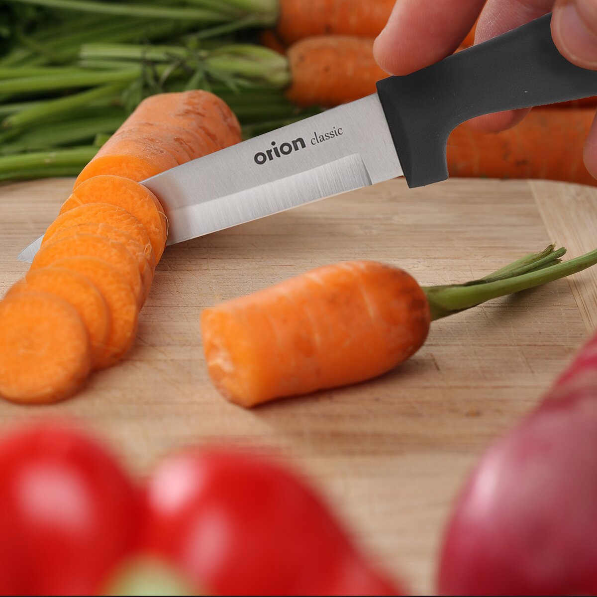 Po umytí v myčce dobře vysušte. Častým používáním myčky dochází k postupnému tupení ostří. Rukojeť je vyrobena z plastu PP s povrchovou úpravou TPR.