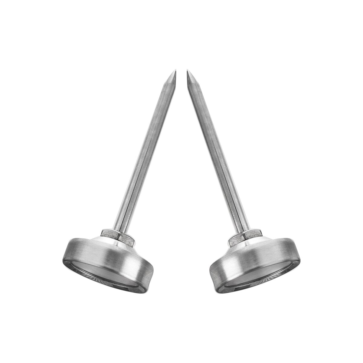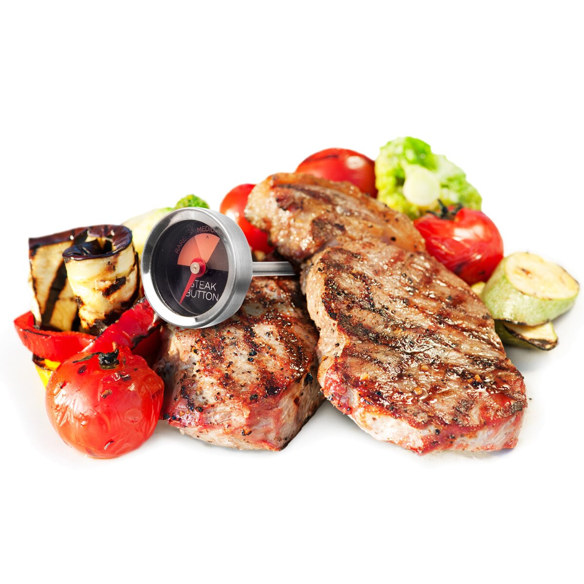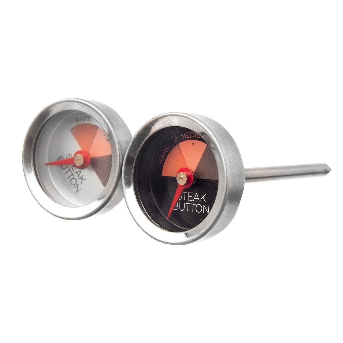 Teploměr na měření teploty uvnitř masa při jeho tepelné úpravě zaručí, že bude maso připravené tak, jak chutná právě vám. Sada 2 ks. Materiál: nerez, sklo. Rozměry: pr. 2,5 cm, délka 7 cm.