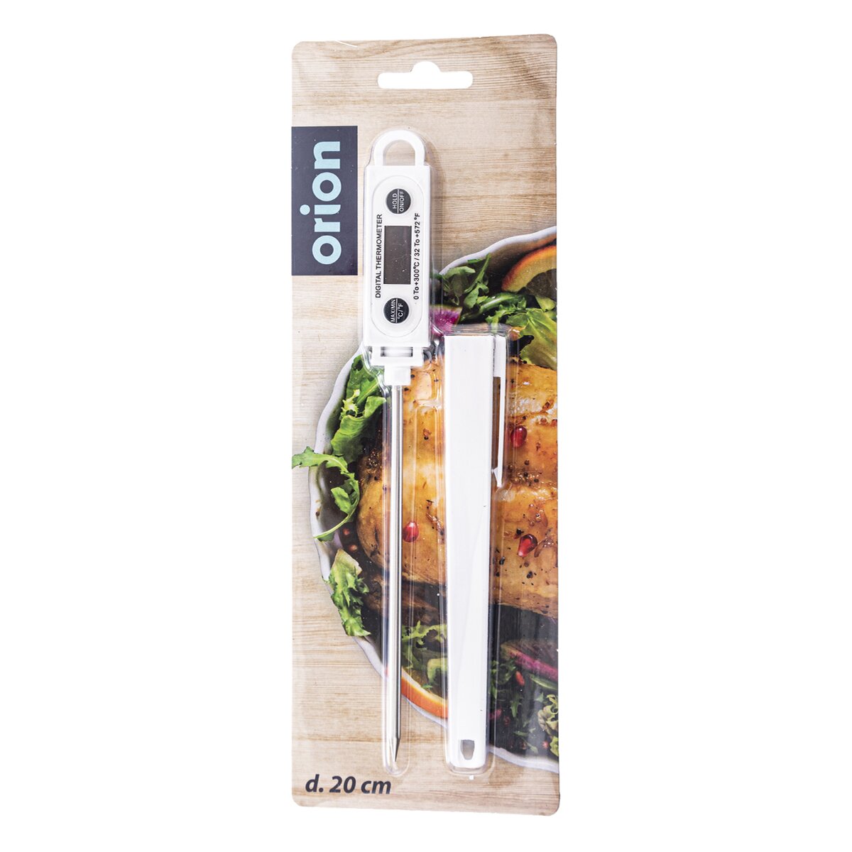 Kód produktu 152829Digitální kuchyňský teploměr o délce 20 cm s plastovým krytem. Měří od 0 °C do 300 °C nebo od 32 °F až 572 °F.