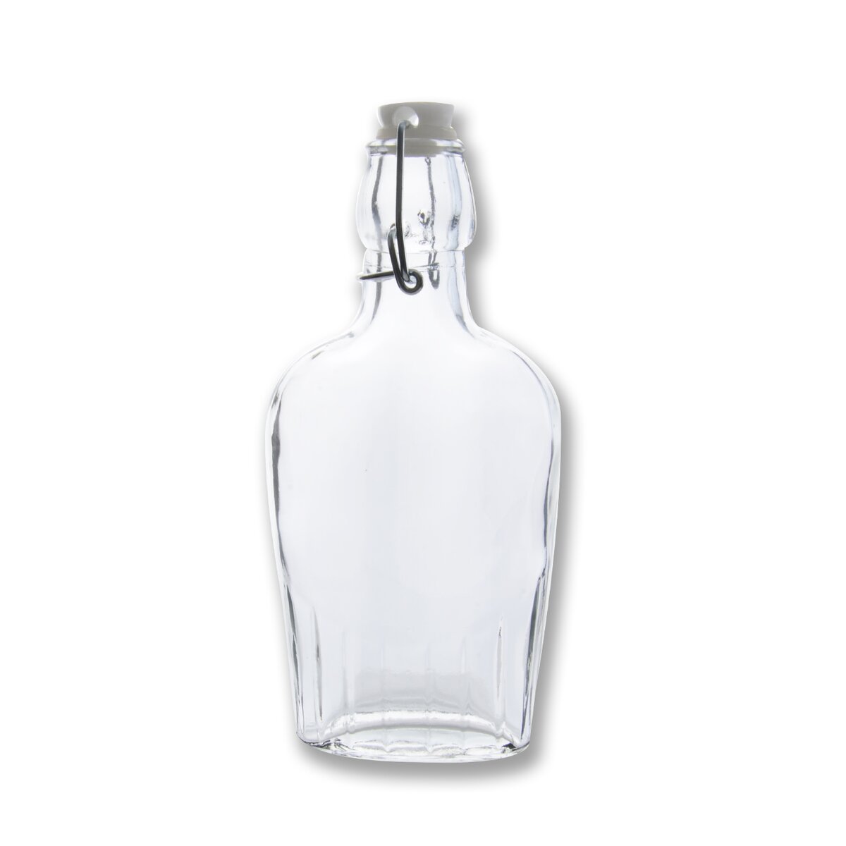 Kód produktu 124549Zaoblená skleněná láhev o objemu 0,28 l s pákovým uzávěrem a silikonovým těsněním.