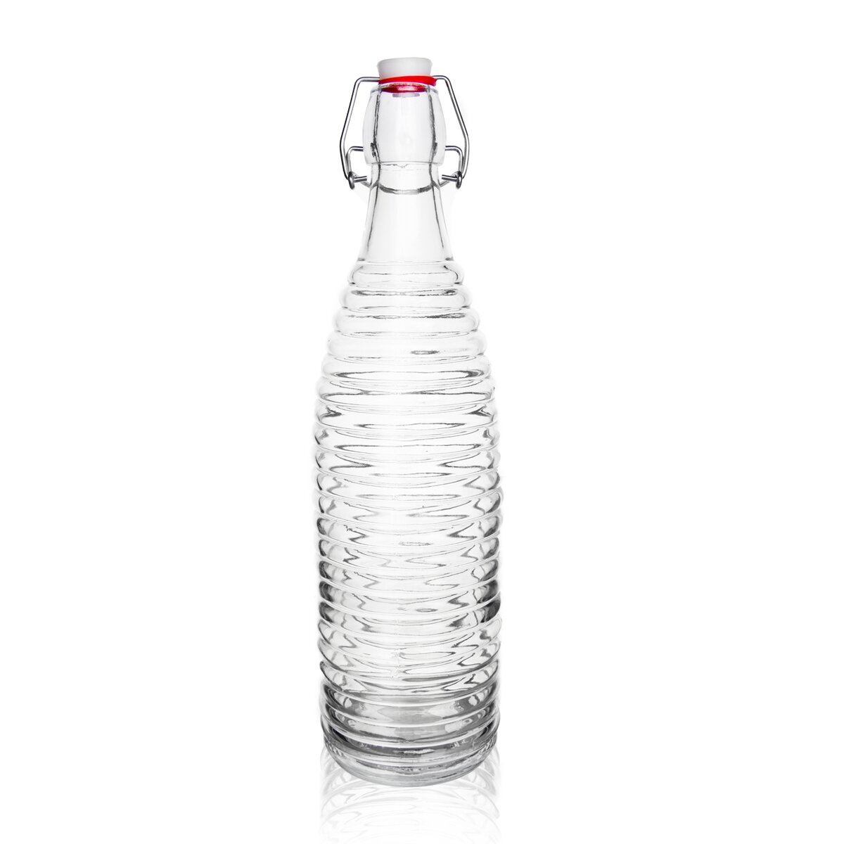Kód produktu 126486Skleněná láhev ERIK o objemu 1 l s pákovým uzávěrem a plastickým dekorem.