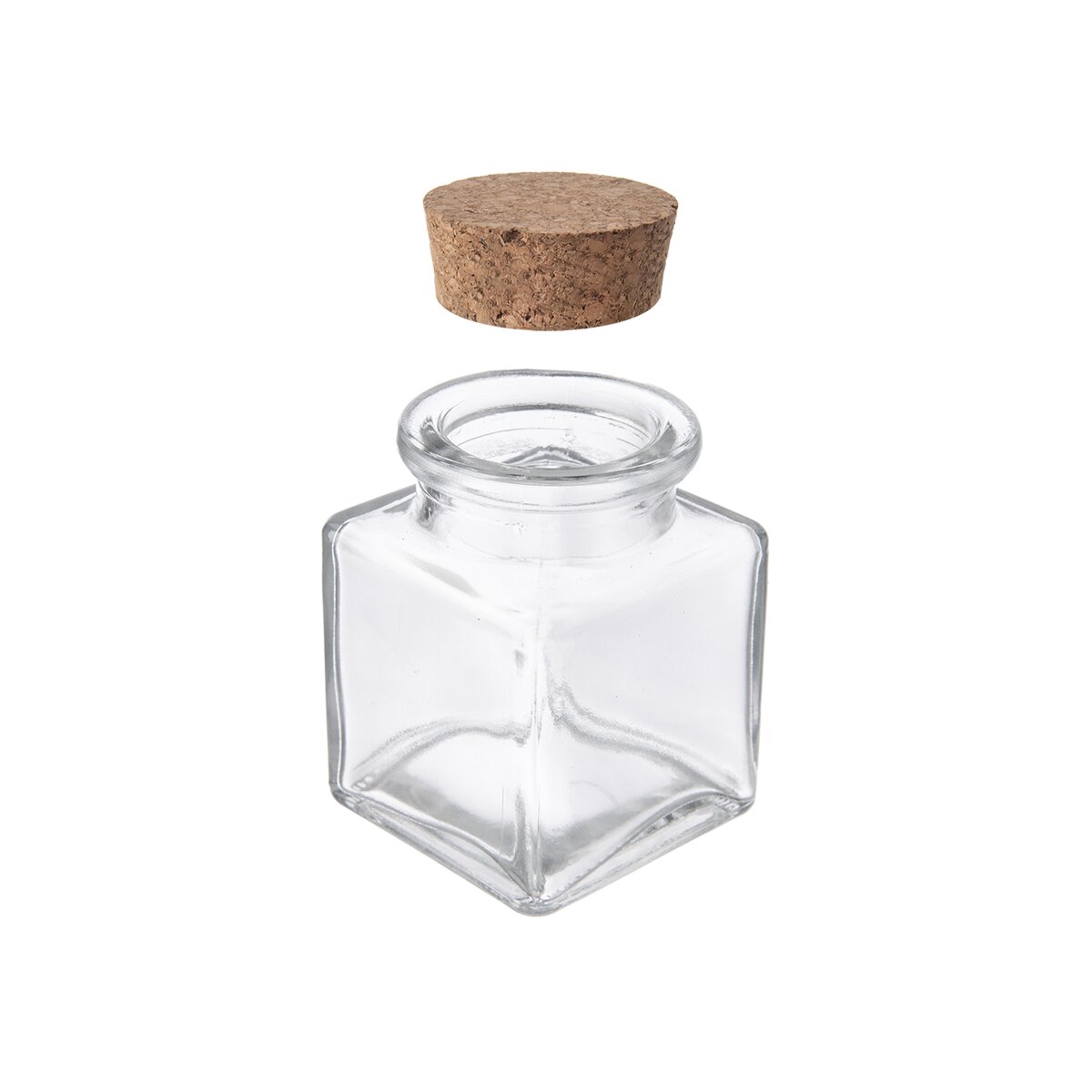 Kód produktu 143795Hranatá skleněná láhev o objemu 50 ml s korkovou zátkou je určena k uložení koření, semínek, sušených bylinek, koupelové soli a dalších drobností.