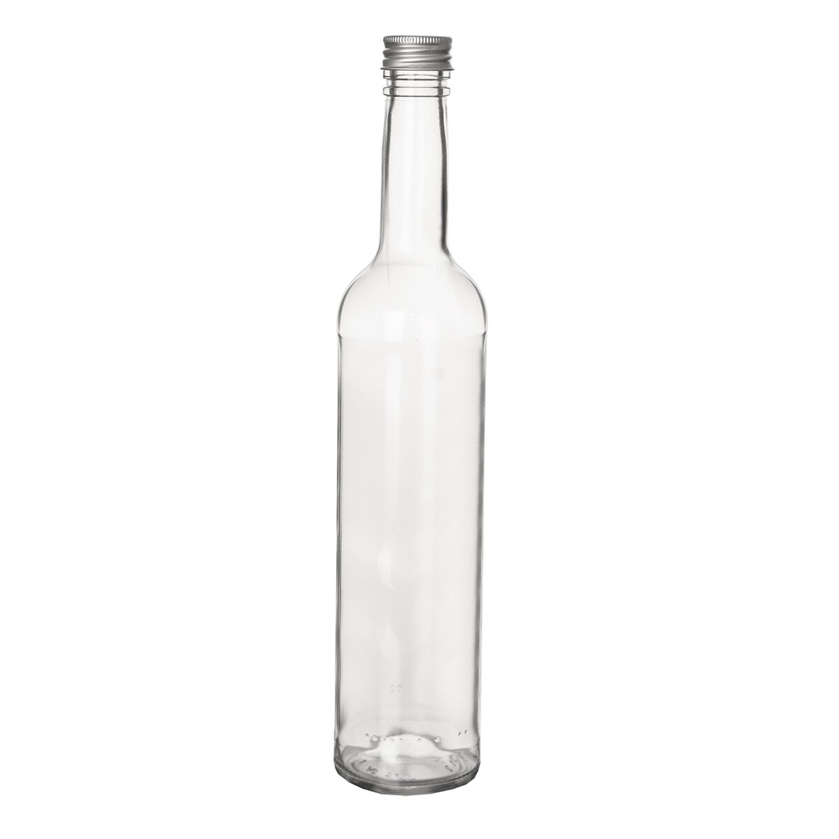 Kód produktu 127706Skleněná láhev o objemu 0,5 l s kovovým víčkem na závit, lze ji plni domácí šťávou, vínem i pálenkou.