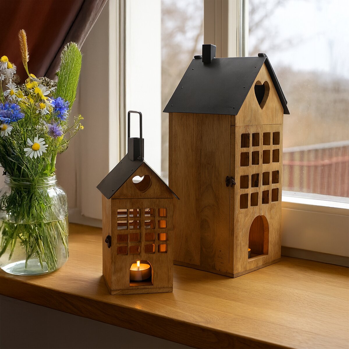 Kód produktu X13075Dřevěná lucerna výšky 66 cm má tvar domečku a je vyrobena z mangového dřeva. Střecha, držadlo a pant umožňující otevírání přední části, je z kovu. Bude stylovou dekorací i zajímavým dárkem.