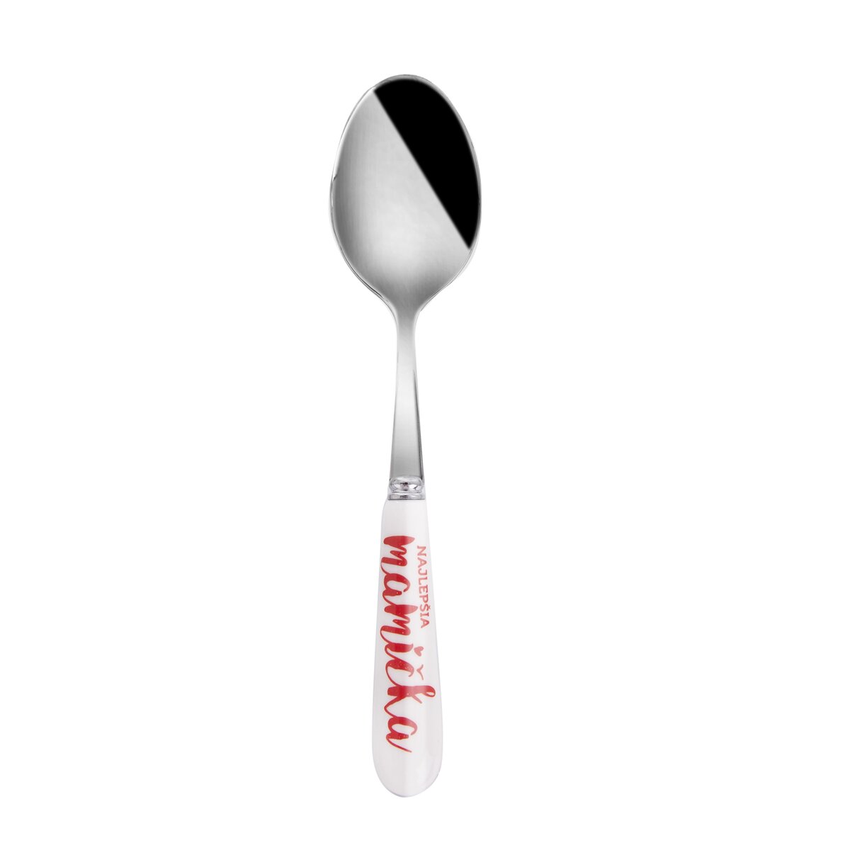 Kód produktu 143678Kovová lžička s keramickým držadlem, o celkové délce 15 cm, s nápisem Nejlepší maminka, která slouží jako dárek i funkční lžička.