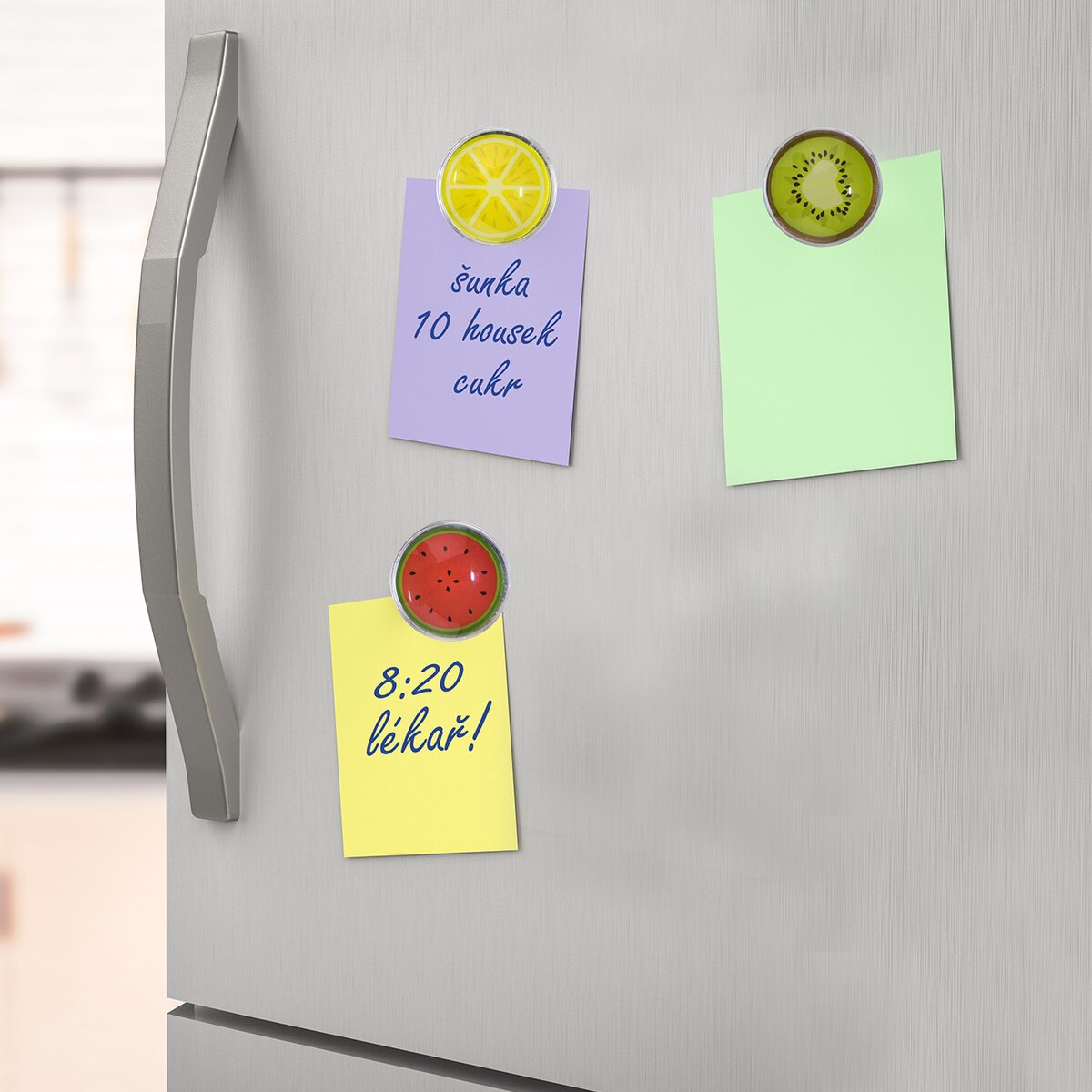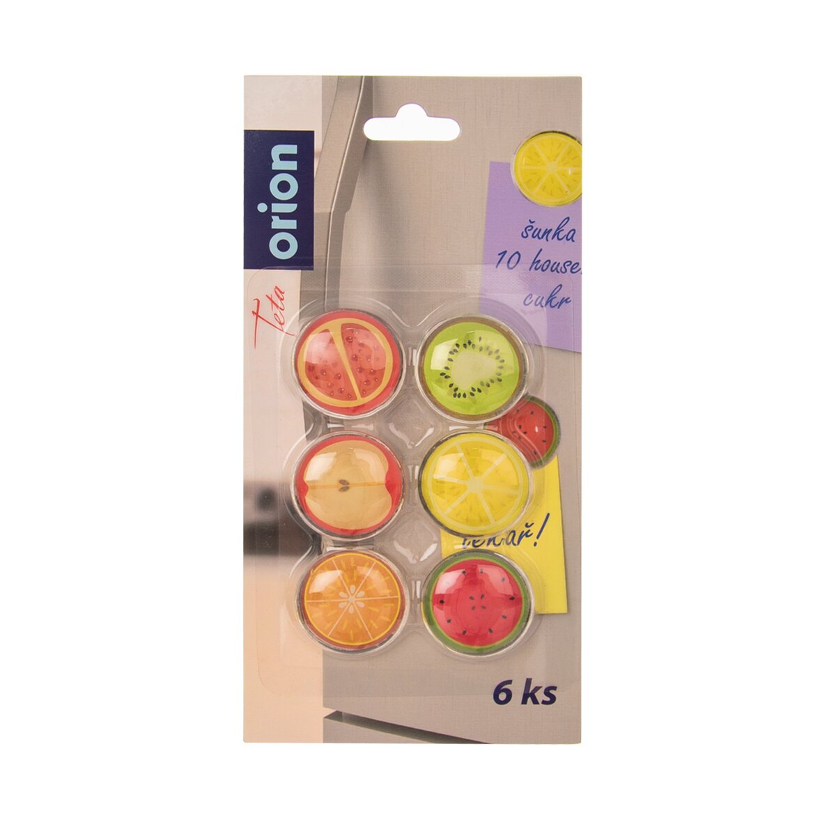 Je libo jablko, meloun či kiwi? Chcete-li oživit vaši lednici, pořiďte si tuto sadu šesti skleněných magnetů ve tvaru ovoce. Magnet má průměr 3 cm.