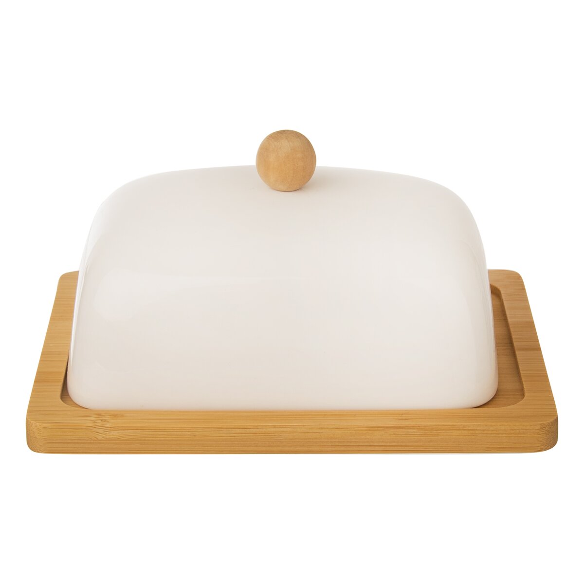 Kód produktu 127144Moderní máslenka na uložení másla v chladničce je vhodná i na servírování při snídani. Má spodní část a úchyt na porcelánovém víčku z bambusového dřeva.