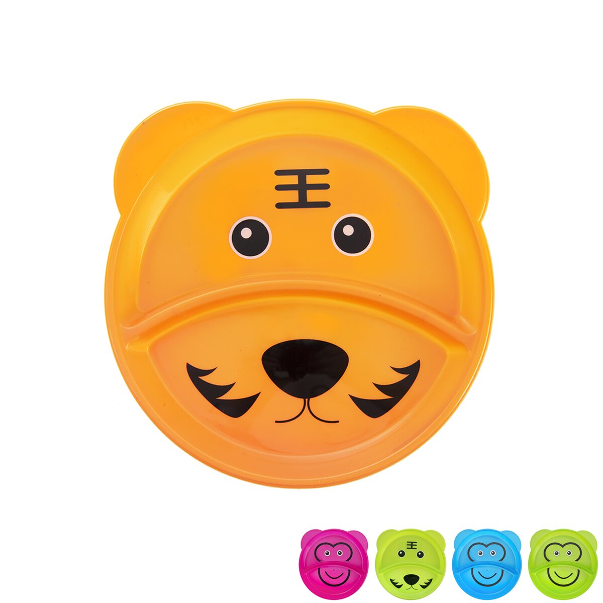 Kód produktu 128273Dětský plastový talíř ve tvaru zvířátka se dvěma oddělenými přihrádkami na jídlo.