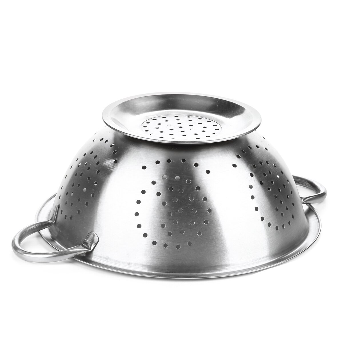 Kód produktu 120603Nerezový cedník - mísa o průměru 24 cm s podstavcem a dvěma úchyty.