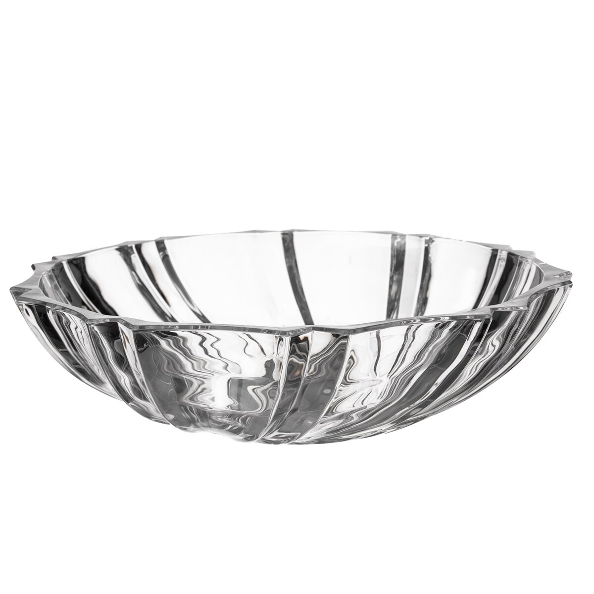 Kód produktu 124785Kulatá skleněná mísa s výrazným plastickým vzorem, o průměru 28,5 cm.