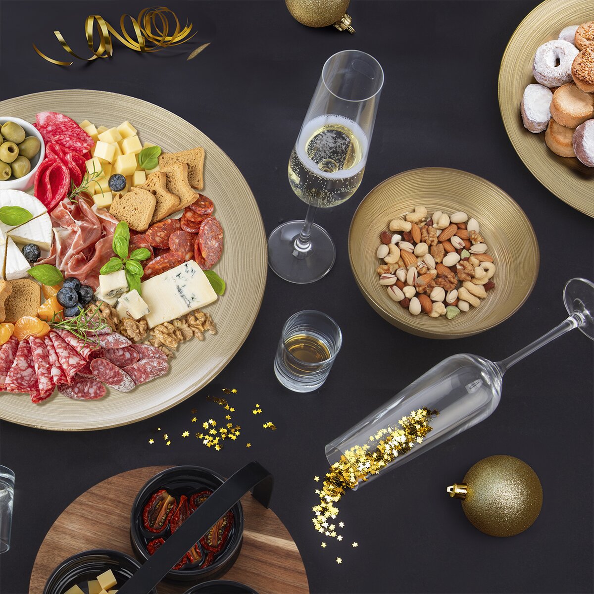 Kód produktu 129225Servírovací miska o průměru 15 cm se zlatým nástřikem a vroubky ze spodní strany se hodí k podávání občerstvení nejen při slavnostních příležitostech. Zaujme i jako chic dekorace.