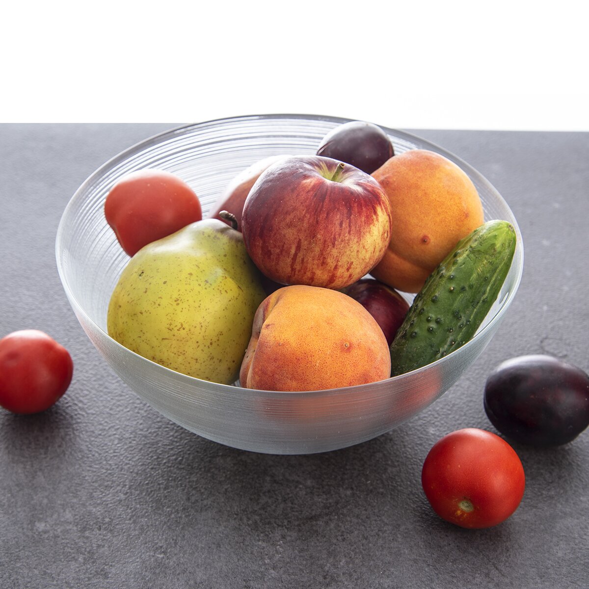 Skleněná mísa střední velikosti se zajímavým reliéfem vodorovných pruhů je určena k přípravě ovocných či zeleninových salátů a dalších pokrmů. Poslouží také jako odkládací miska při vaření a pečení, při marinování masa apod.