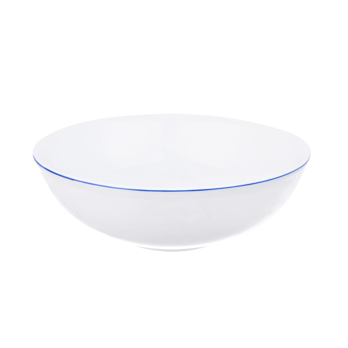 Miska s modrou linkou. Materiál: porcelán. Rozměry: pr. 17 cm, v. 6 cm.
