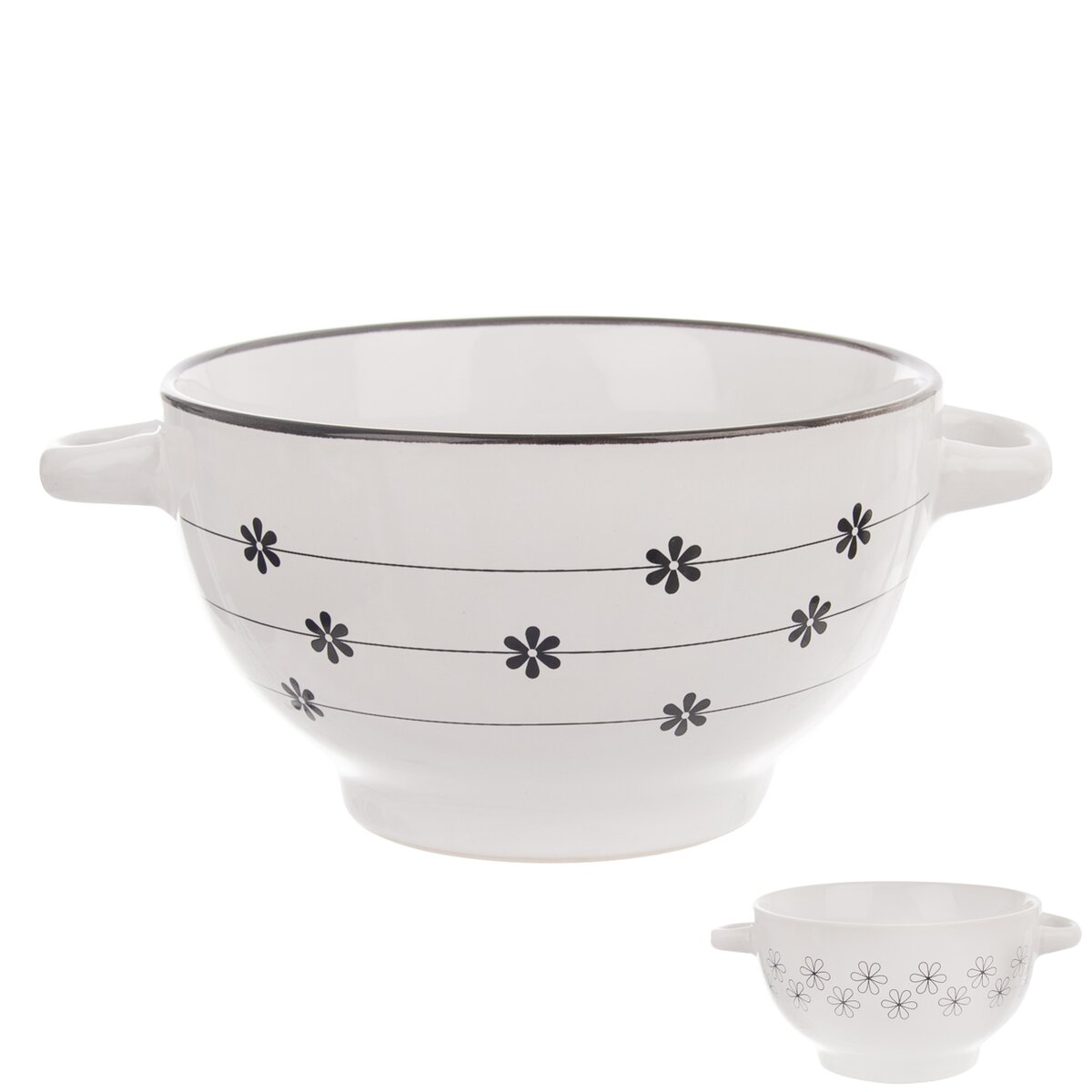 Kód produktu 128418Keramická polévková miska o objemu 0,75 l se dvěma uchy a v dekoru FLOWER.