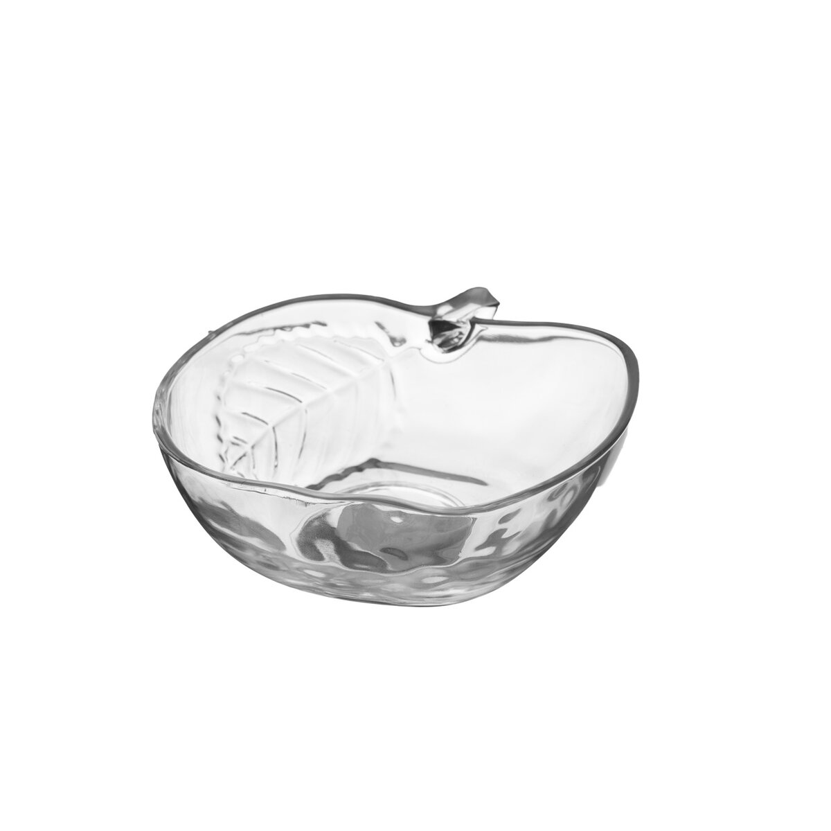 Kód produktu 124772Skleněná miska o rozměrech 12×12,5×4,5 cm ve tvaru JABLKO s plastickým dekorem.