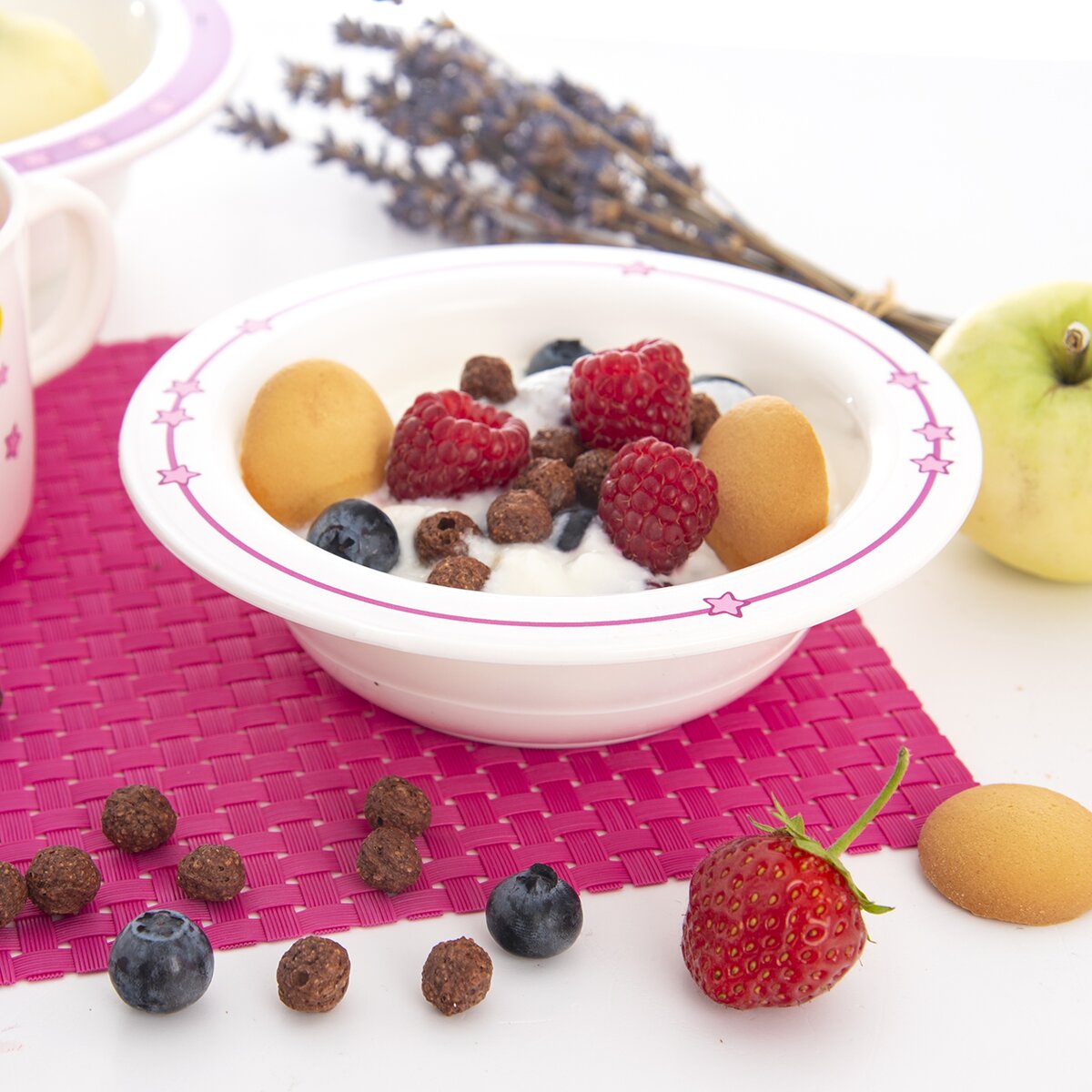 Hodí se tak k servírování polévky, ovoce, přesnídávky, svačinky i večeře. Můžete ji mýt v myčce na nádobí i ohřívat v mikrovlnné troubě.