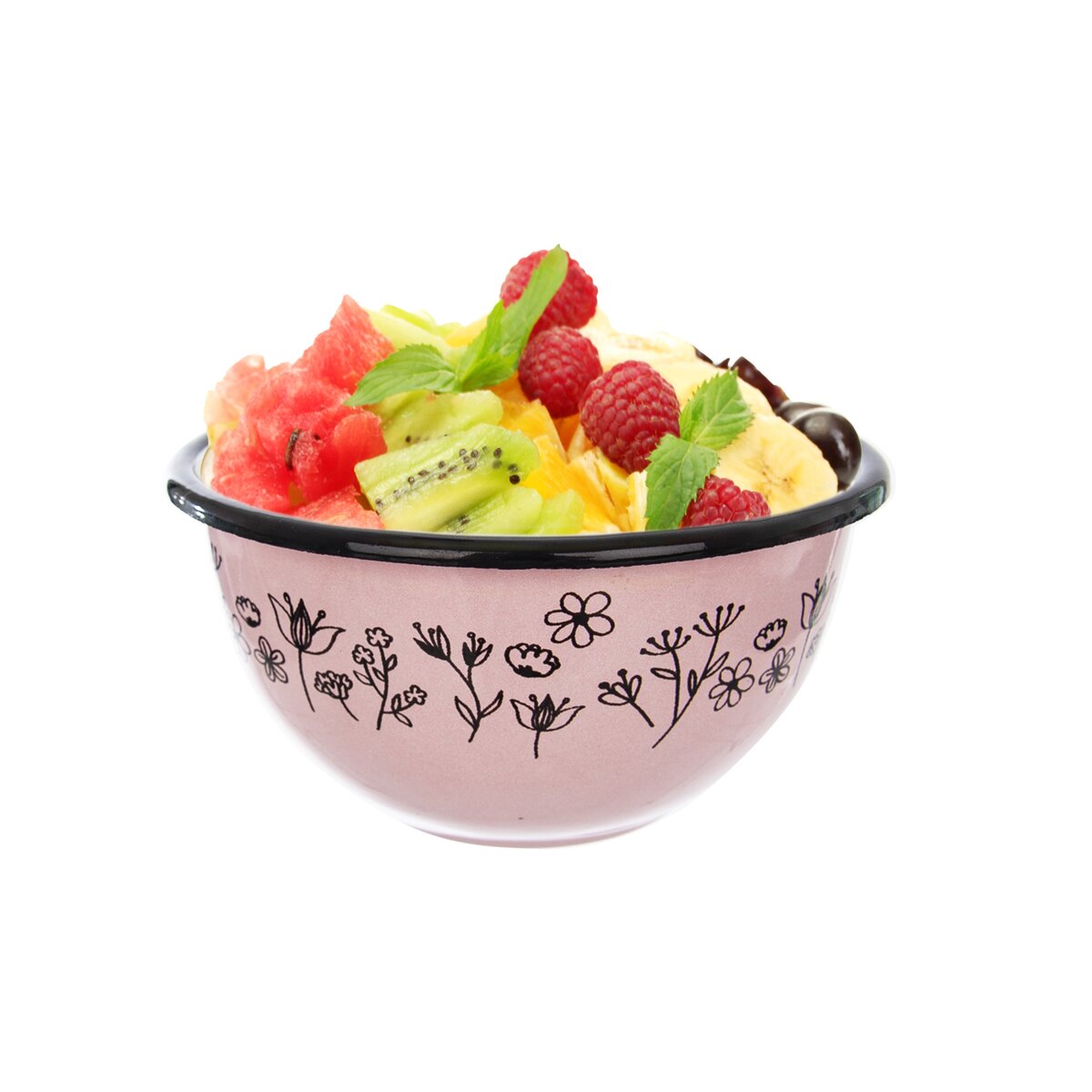 Krásná smaltovaná miska, se kterou se v mžiku přesunete na rozkvetlou louku před babiččinou chaloupkou. Světle růžová barva v kombinaci s použitým materiálem vytváří dokonalý retro vzhled, který doplňuje jemný dekor květin.