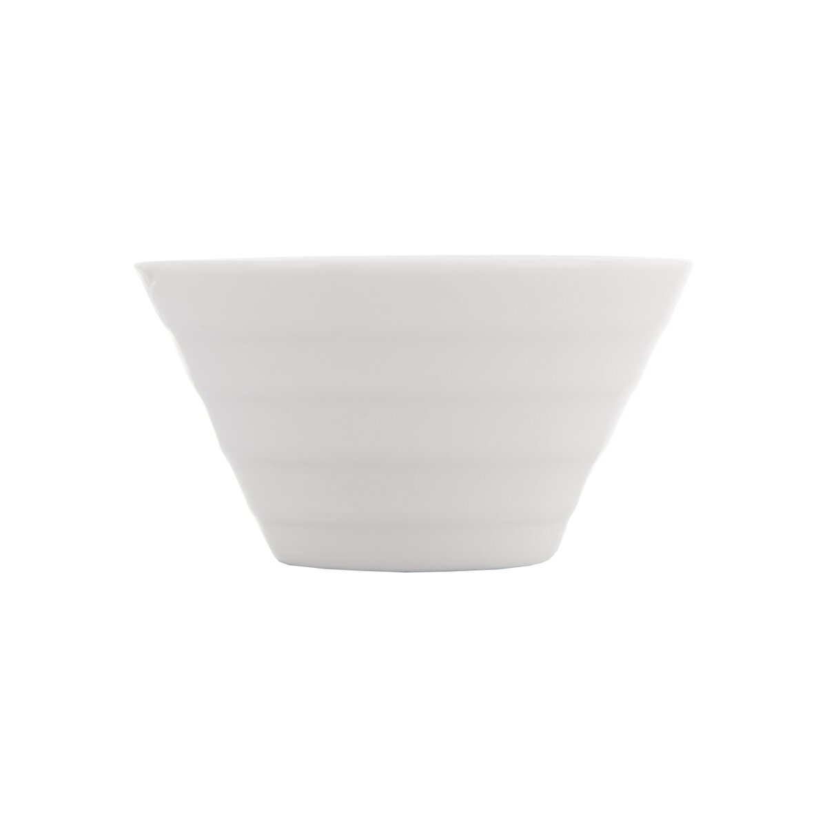 Elegantní kónická miska s plastickým dekorem vodorovných vroubků z vnější strany se hodí na ledacos. Na snídaňové cereálie, čerstvé ovoce, pudink, nadýchanou pěnu i zmrzlinový pohár.