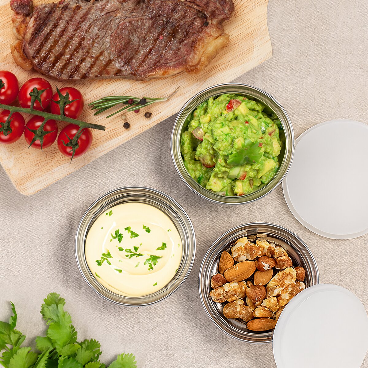 Sada kulatých nerezových mističek je ideální na omáčky a dipy – skvěle se hodí ke grilování nebo večeři s přáteli. Svou velikostí je ideální k uložení pesta, tatarky, nakrájených chilli papriček a dalších dochucovadel nejen k masu. Milovníci asijské kuchyně do nich mohou vložit nakládaný zázvor, wasabi, ústřicovou omáčku apod.
