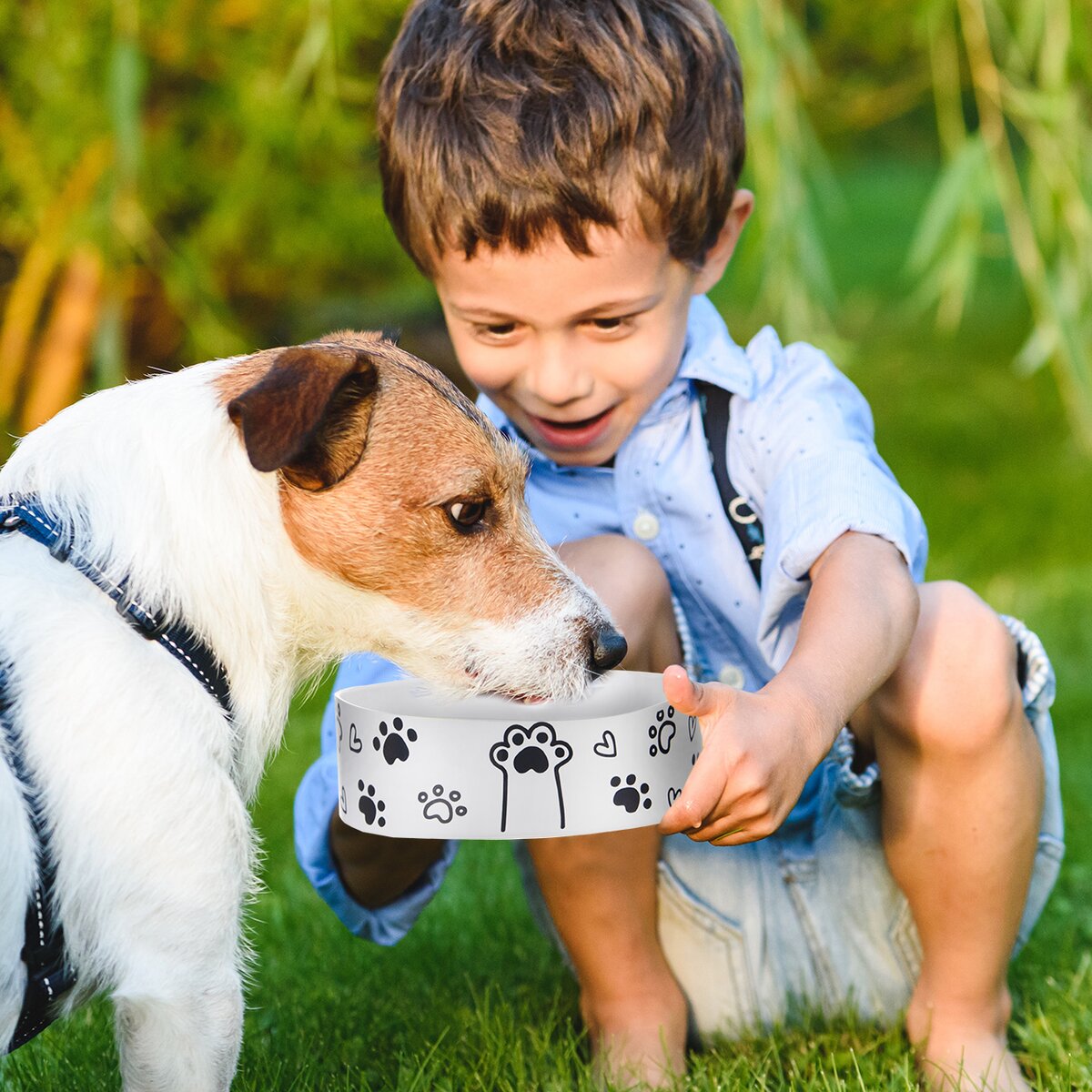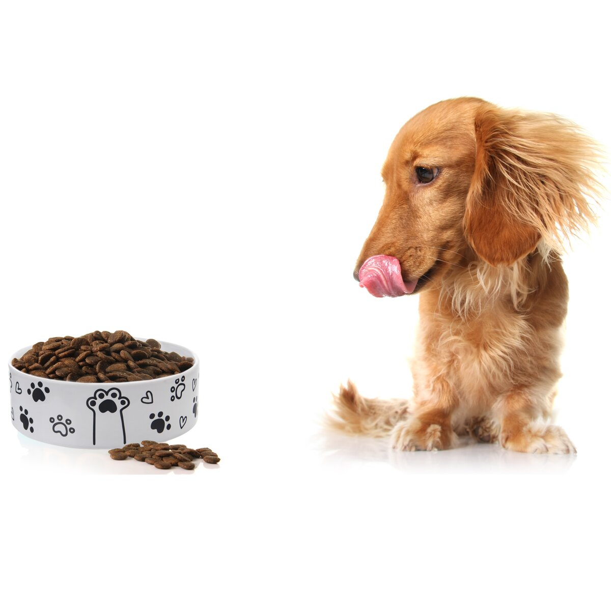 Kód produktu 124798Bílá keramická miska pro psy s originálním černým dekorem vně i uvnitř, o průměru 15 cm.
