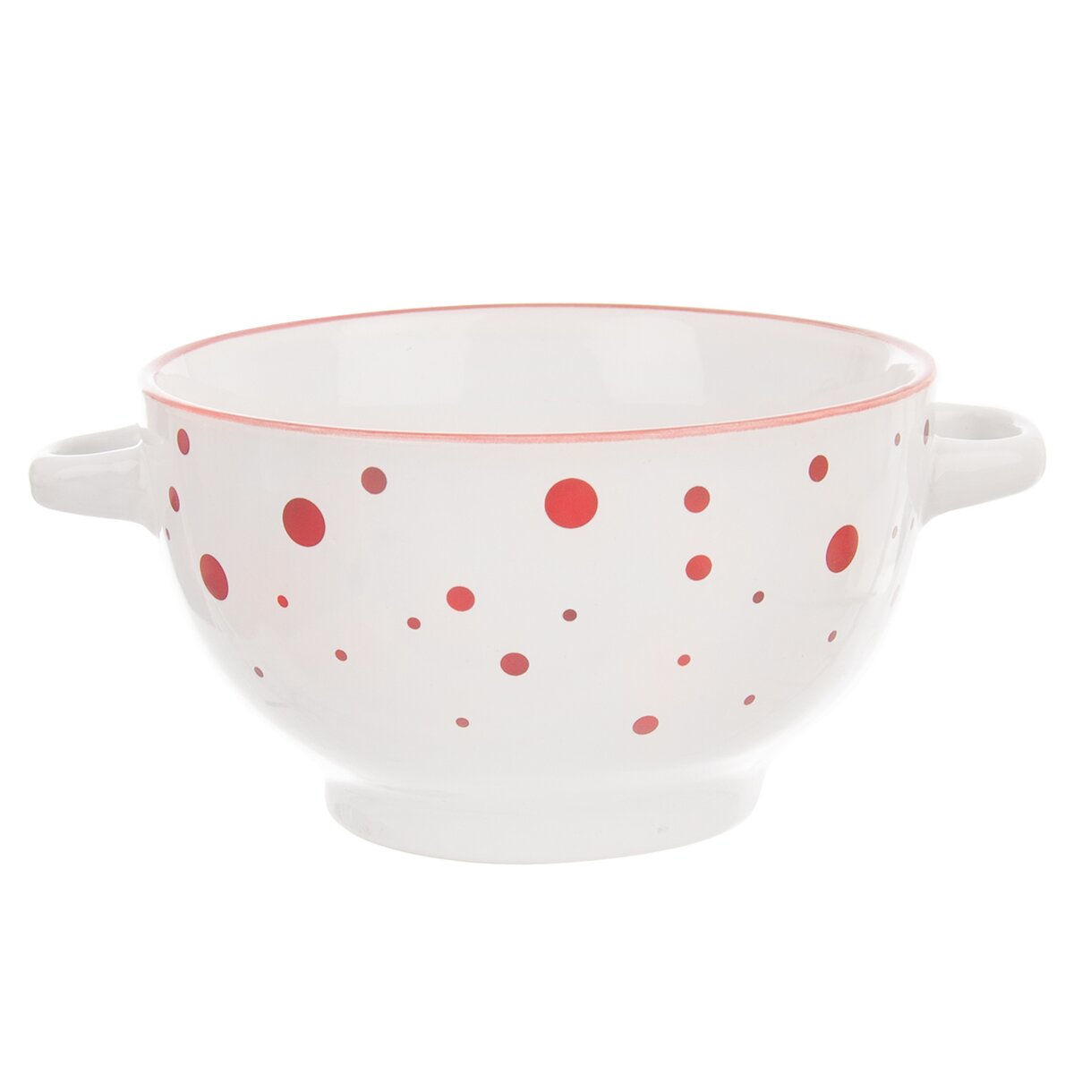 Tato keramická polévková miska má objem 0,75 l. Její přenášení usnadňují dvě praktická ucha. Navíc je ozdobená roztomilým červeným dekorem, který z ní dělá jedinečný kousek do vaší kuchyně.