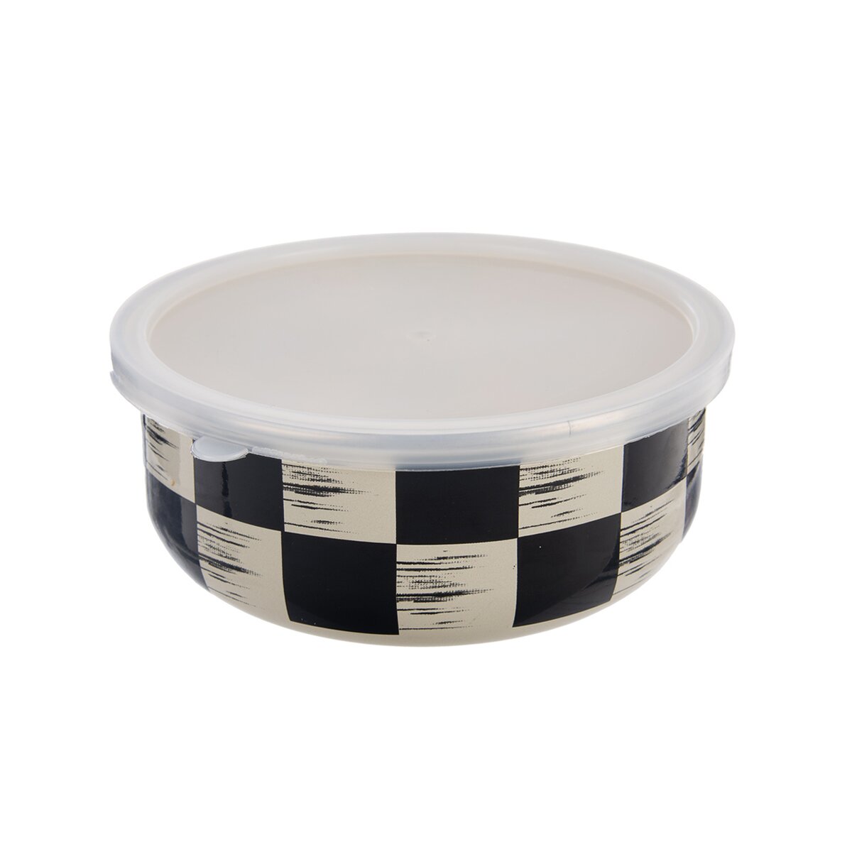 Kód produktu 129232Smaltovaná miska ŠACHOVNICE s nerezovým lemem má objem 0,85 l, je doplněna plastovým víčkem a slouží ke skladování, přenášení i servírování pokrmů.