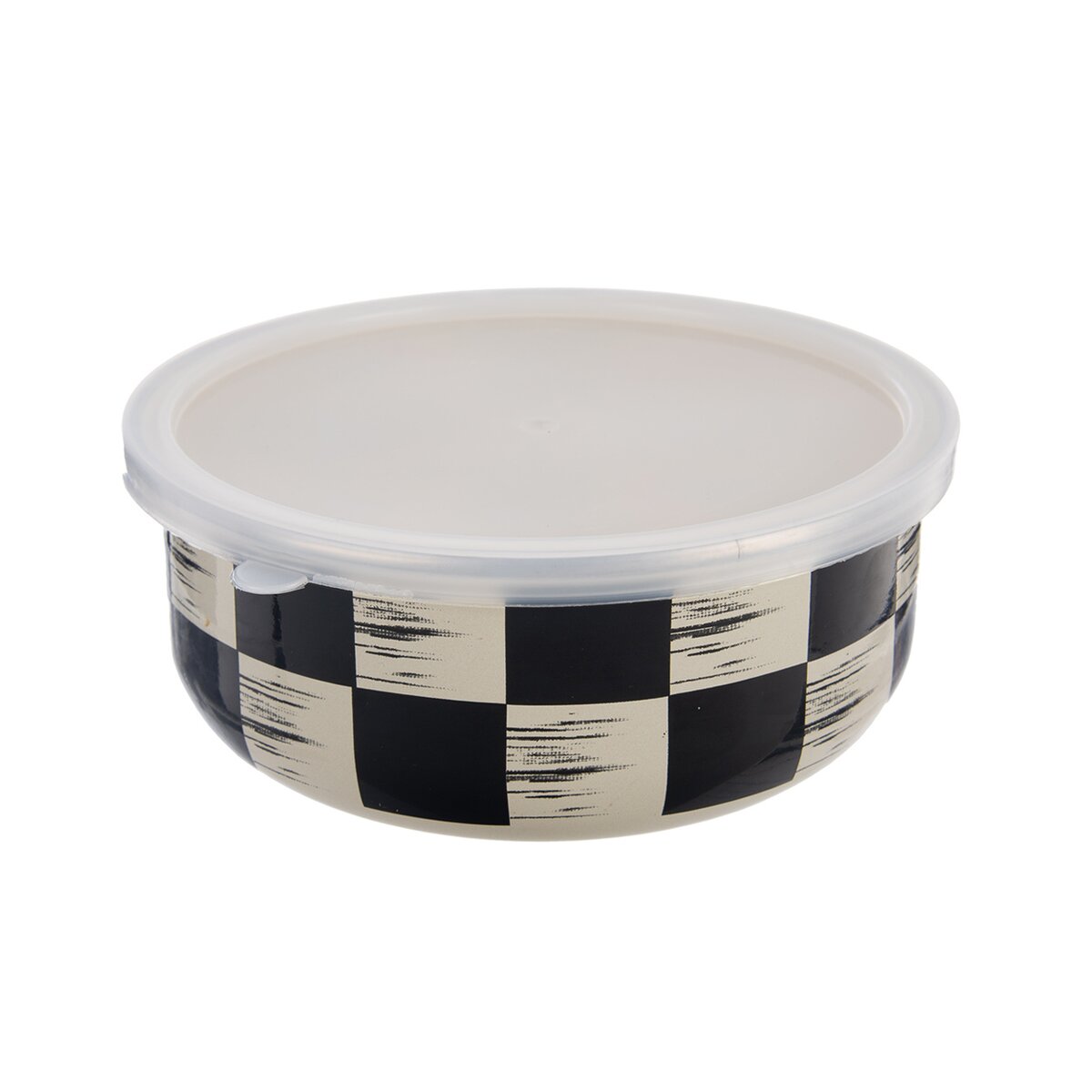 Kód produktu 129233Smaltovaná miska ŠACHOVNICE s nerezovým lemem má objem 1,15 l, je doplněna plastovým víčkem a slouží ke skladování, přenášení i servírování pokrmů.