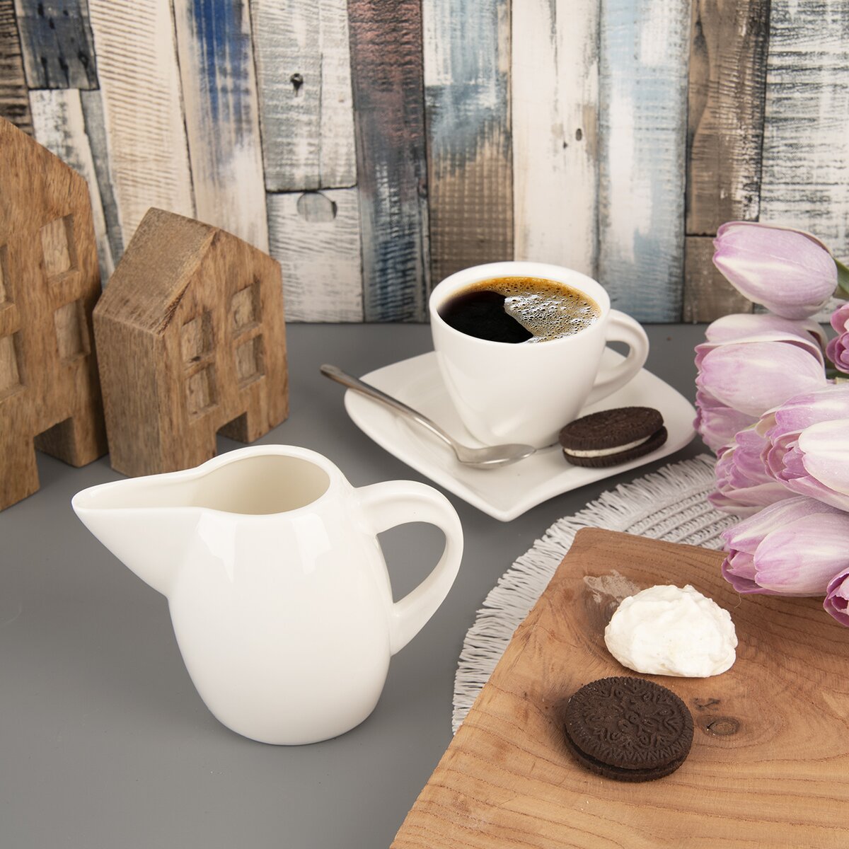 Servírování horké kávy, spolu s pěknou cukřenkou a zajímavou porcelánovou mlékovkou bude dokonalé. Navíc jednoduchý tvar a bílá barva působí nadčasově. Své využití najde doma, v restauračních zařízeních i kavárnách.