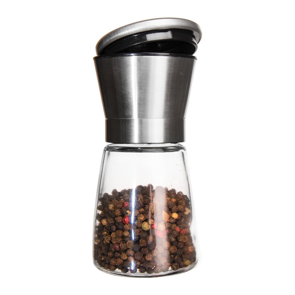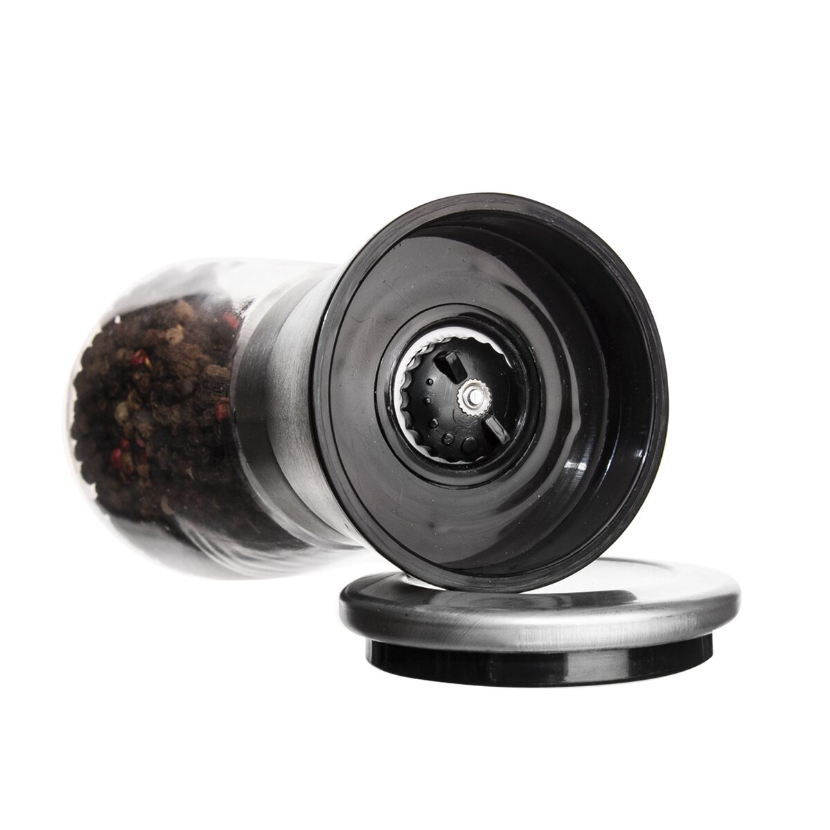 Nerezový mlýnek na pepř nebo sůl s transparentní skleněnou částí, který snadno čerstvě namele pepř nebo při dokončování pokrmů, ale dochutí i hotová jídla přímo u stolu.