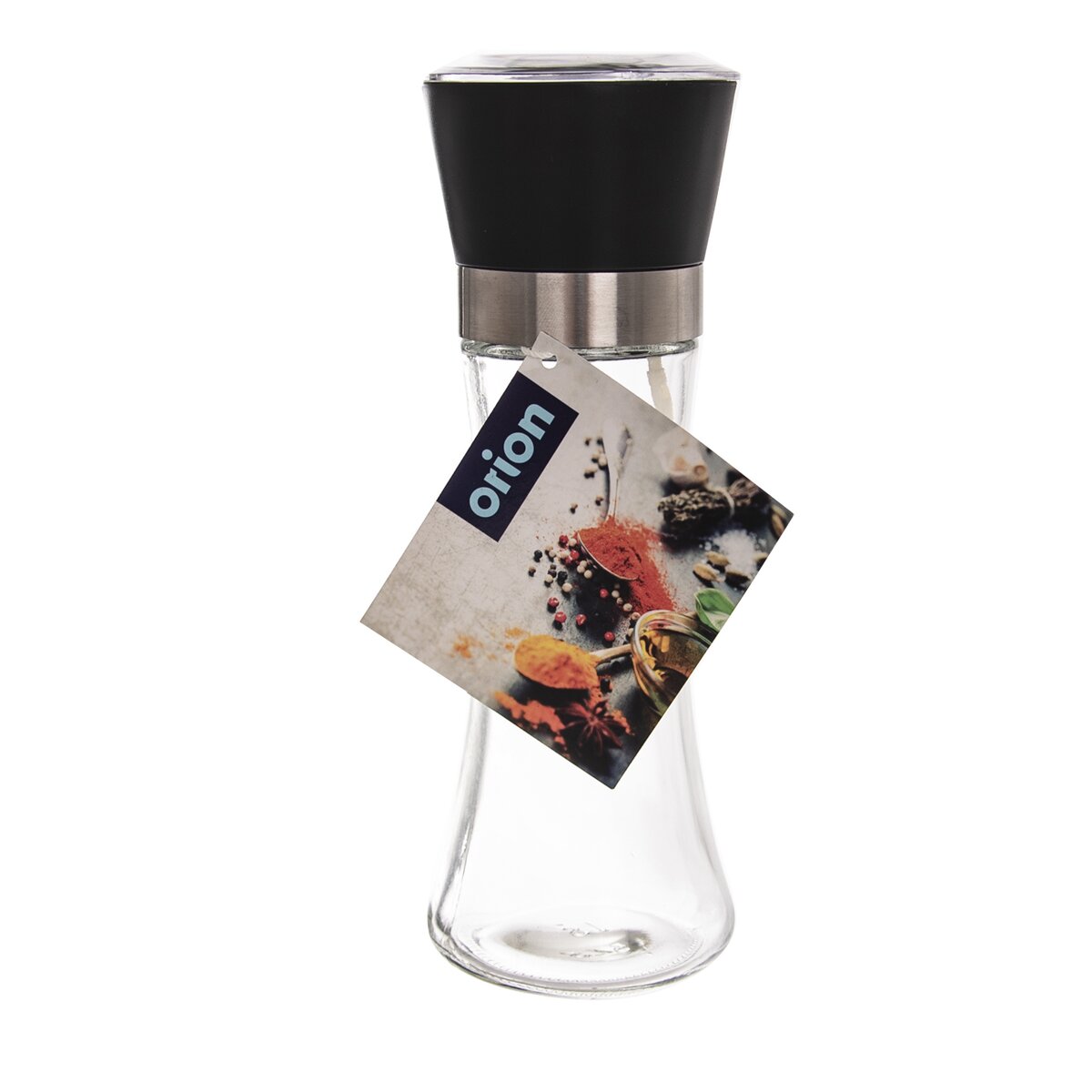 Nerezový, konvexně prohnutý mlýnek na pepř nebo sůl s transparentní skleněnou částí, který snadno čerstvě namele pepř nebo při dokončování pokrmů, ale dochutí i hotová jídla přímo u stolu.