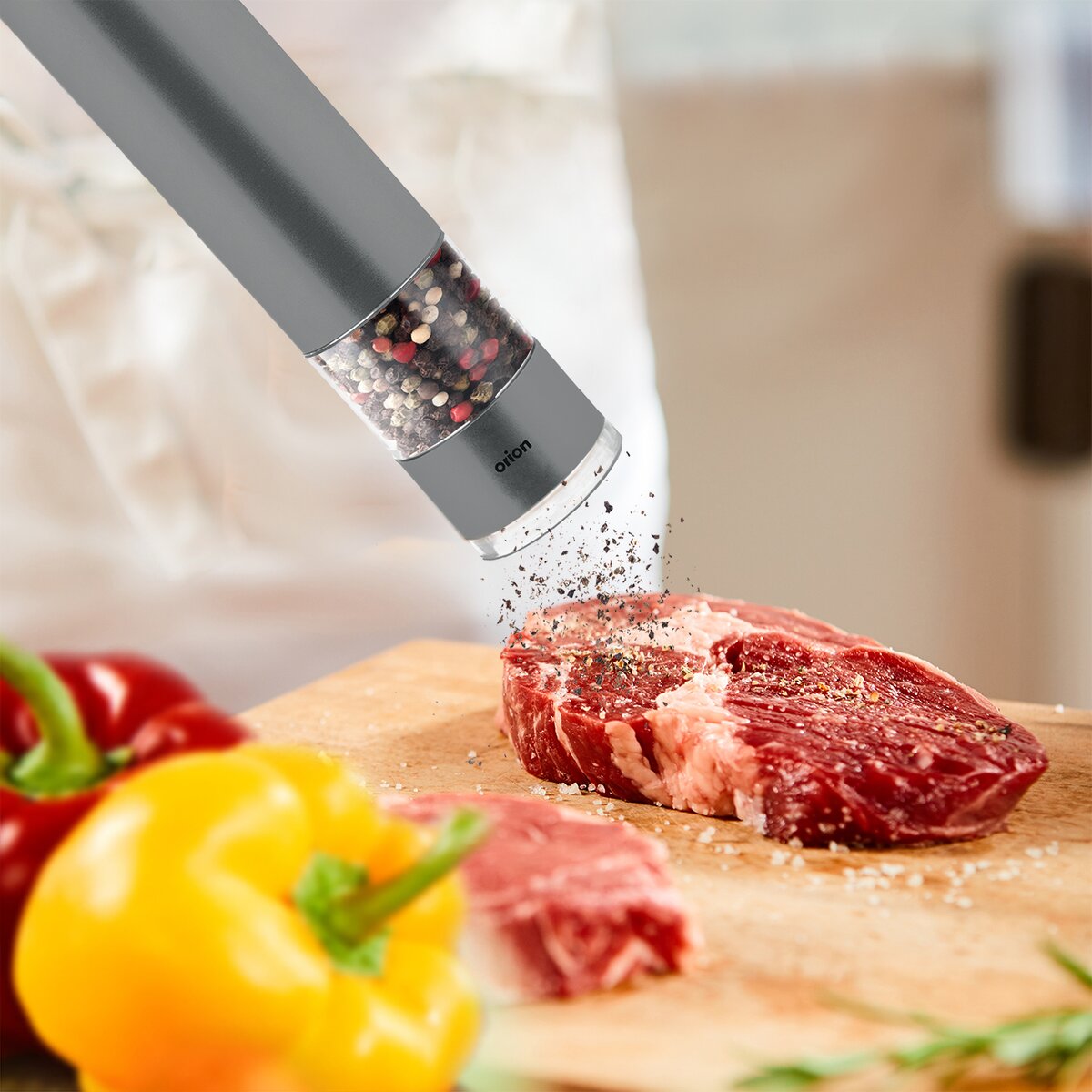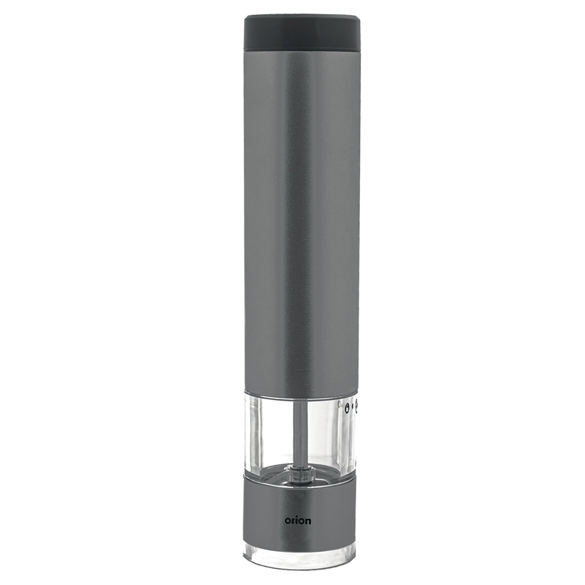 Kód produktu 130225Elegantní tmavě šedý elektrický mlýnek na koření napájený 1,5 V AAA bateriemi, určený k dochucení pokrmů solí, pepřem nebo jiným kořením. Má keramický mlecí mechanismus.