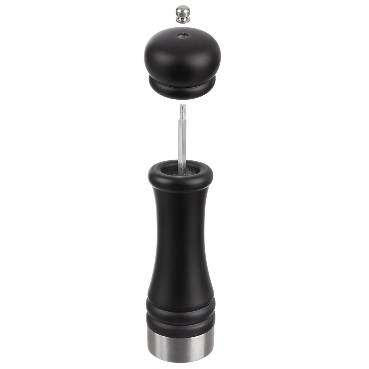 Kód produktu 130237Mlýnek na koření, pepř či sůl je vyroben z gumovníkového dřeva s černým lakem a má keramický mlecí mechanismus. Lze nastavit hrubost mletí.