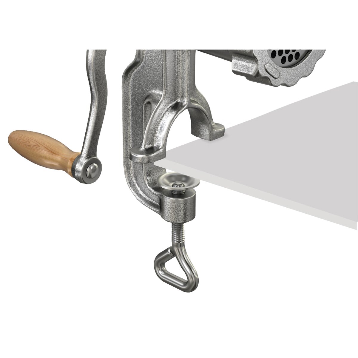 Mlýnky mají certifikát zdravotní nezávadnosti, jsou povrchově upravené silnou vrstvou potravinářského cínu. Má mimořádně vysoká životnost. Ke stolu šíře pracovní desky až 4 cm jej připevníte pomocí klasického šroubu. Gumová podložka zabrání poškození pracovní desky. Velikost násypky je 10x8 cm, můžete namlít jak libové maso, bůček, tak tvrdé rohlíky či zeleninu.