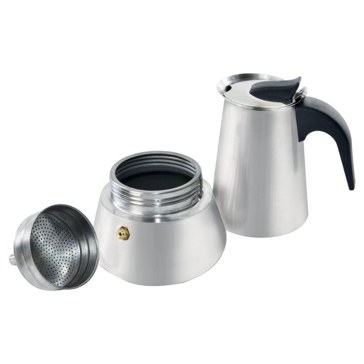 Kód produktu 131918Nerezová moka konvička o objemu 0,45 l s plastovou ergonomickou rukojetí, pro přípravu lahodného silného espressa.
