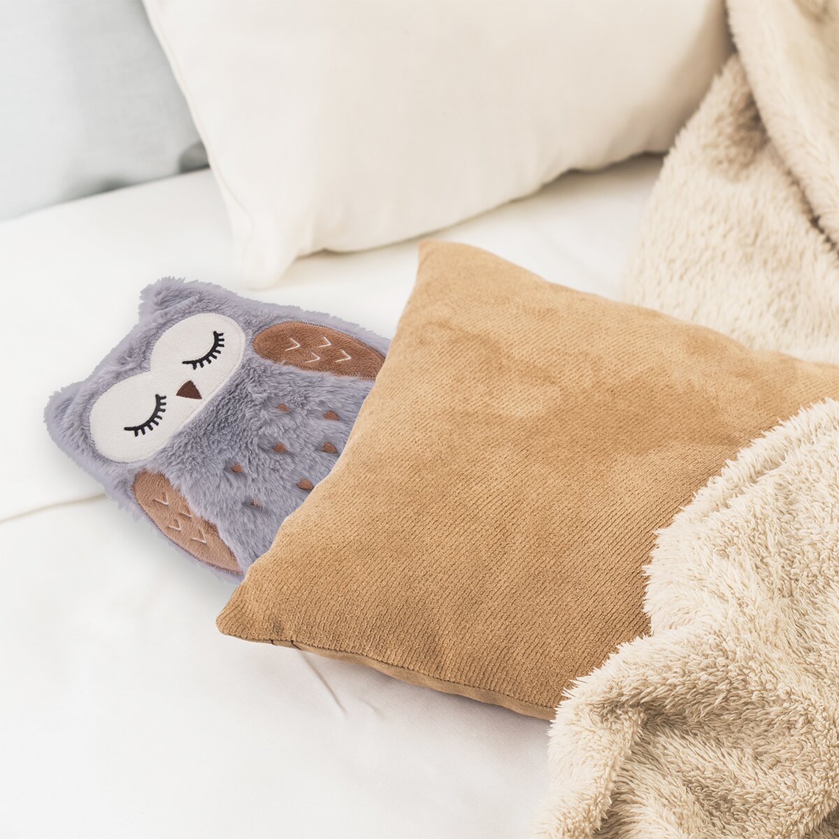 Kód produktu 830648Nahřívací polštářek s výplní z pšeničných zrn a levandule je vložen ve snímatelném příjemném obalu ve tvaru roztomilé sovičky.